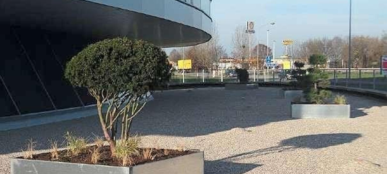 - bepflanztes Becken im Außenbereich / Naturstein im öffentlichen Bereich