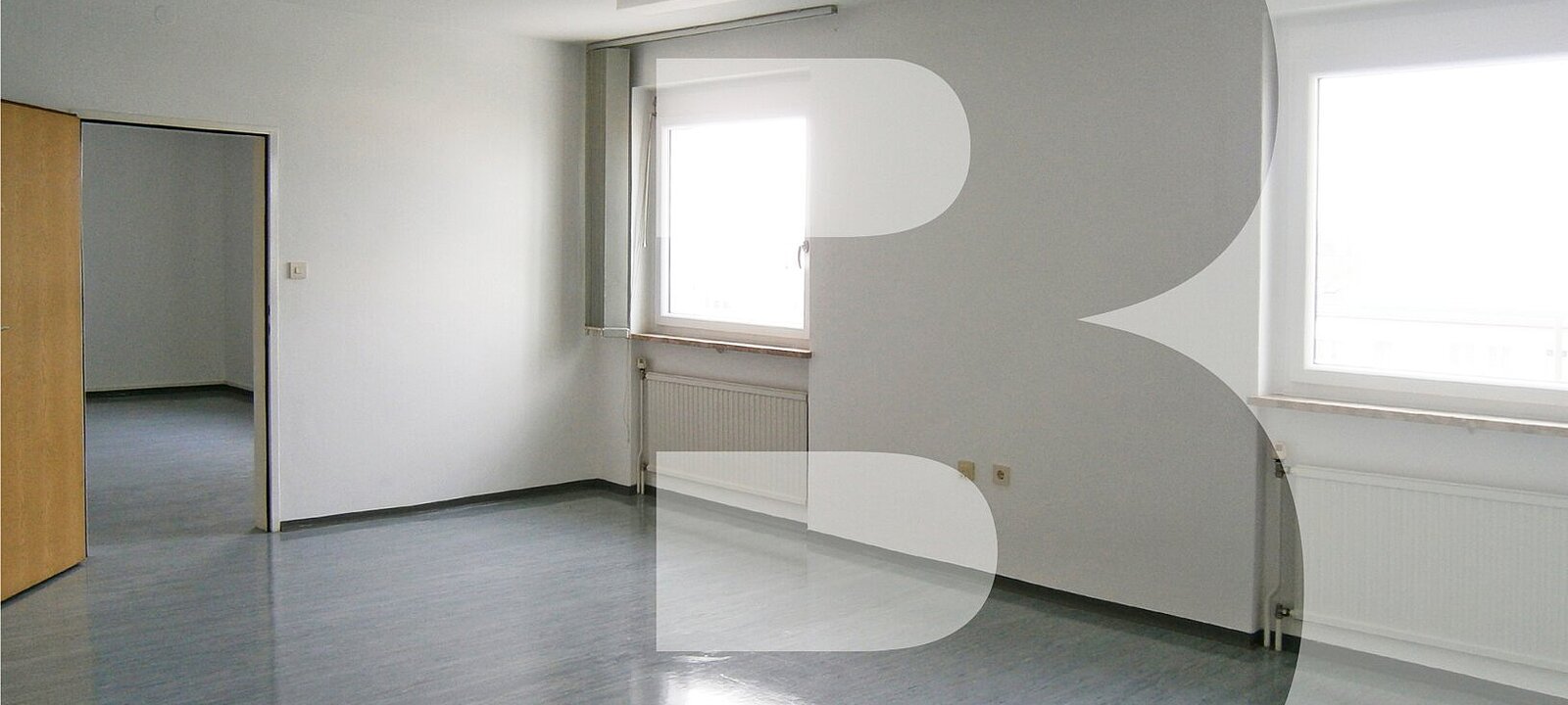 Die hellen Räume sind mit pflegeleichtem PVC-Boden und dezenten Lamellenvorhängen ausgestattet. Große Deckenlampen erhellen Ihren Arbeitsplatz und auch für die EDV-Verkabelung ist schon gesorgt.