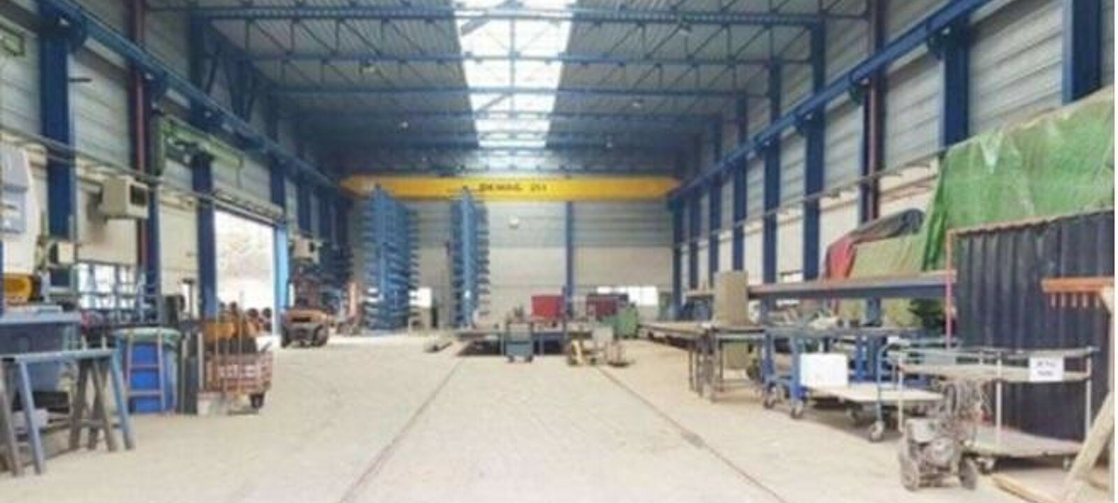 • 2 Hallenbaukörpern je 8 m Höhe bis zur Krankante. Die größeren Hallen haben eine Höhe von 12 Metern.(Maße ca. 22 x 56 m und 20 x 85 m) mehrere Kräne ( von 16 bis 25 Tonnen) Toreinfahrten 7,50 x 5 m und 5 x 6,70 m