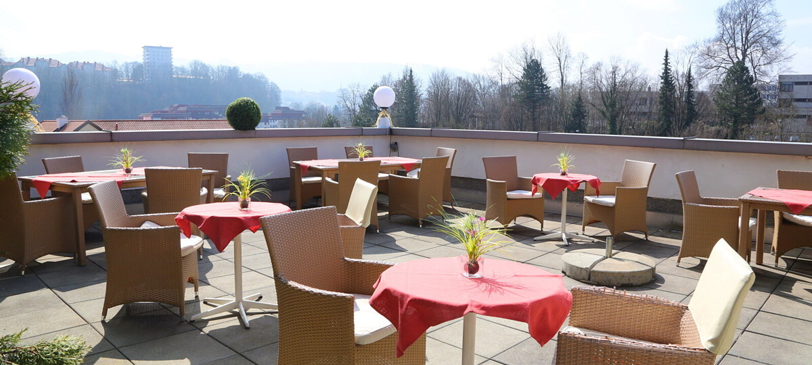 •Gastgarten mit 150 Plätzen und Terrasse mit 50 Plätzen