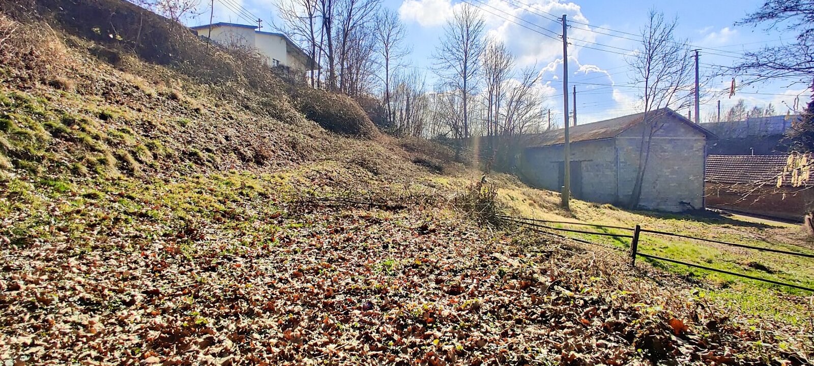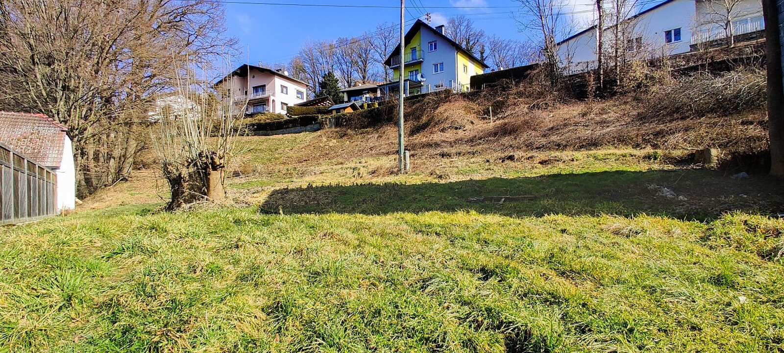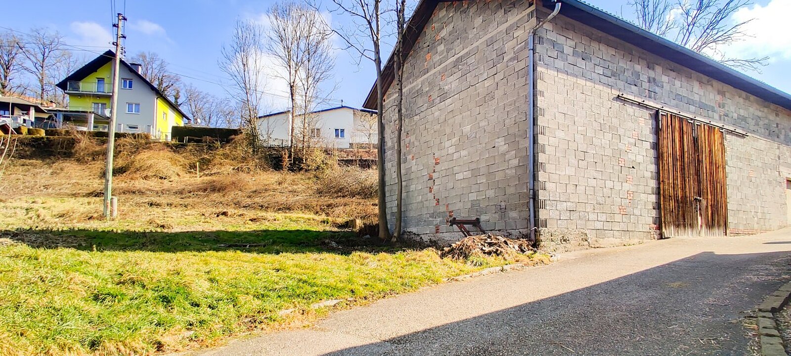 Auf einem Teil mit etwa 1.000 m² Widmung als „Bauland Wohngebiete (W)“ befindet sich ein Stadl mit geschätzten 210 m² Nutzfläche, davon ca. 50 m² Garage und ca. 160 m² Lager.