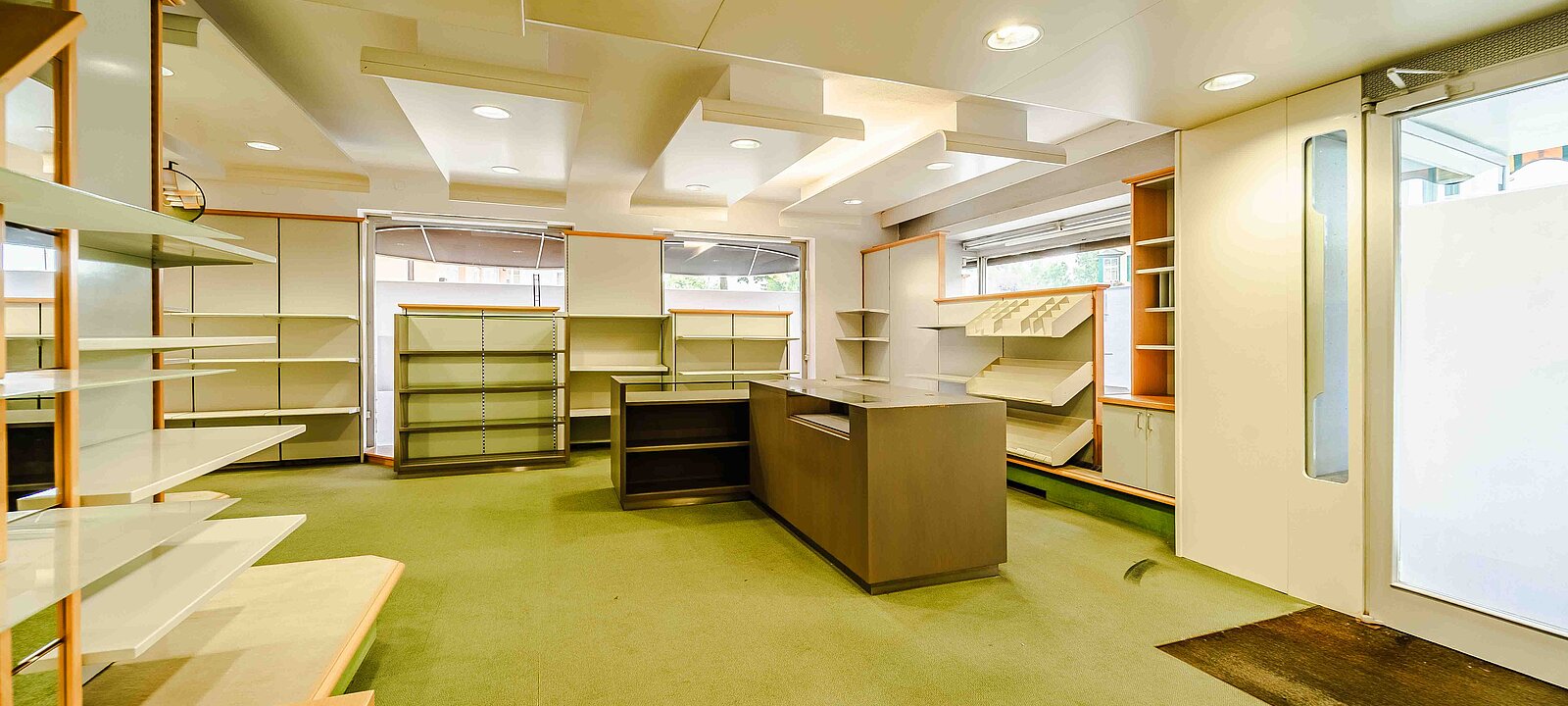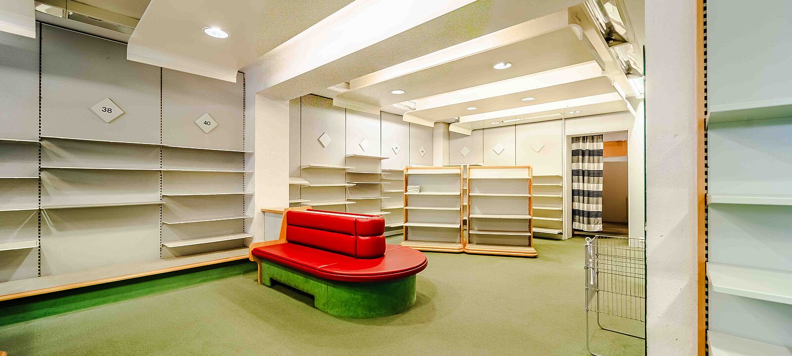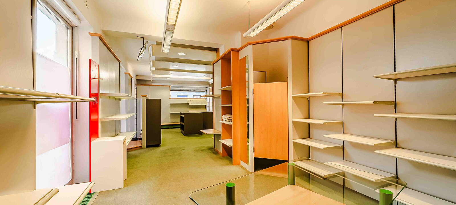 Schon beim Betreten des Lokals eröffnet sich ein klar strukturierter Verkaufsraum mit ca. 121  m² Fläche. Rechterhand befindet sich der Empfangs- bzw. Verkaufstresen, im hinteren Bereich befindet sich zudem ein kleinerer Verkaufsbereichmit integrierter Umkleide. Linkerhand öffnet sich der größere Teil des Verkaufsraums – ideal nutzbar für Produktpräsentationen oder individuelle Gestaltung ihres Geschäftes.