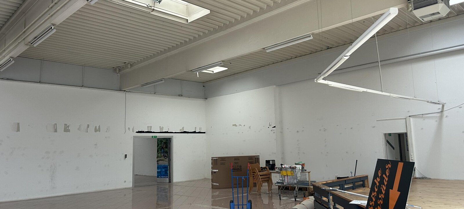 Halle und Büro mit M Widmung für Handel aller Art. Es gibt viele dazugehörige Parkplätze vor dem Geschäft.GESCHÄFTSFLÄCHEWIDMUNG