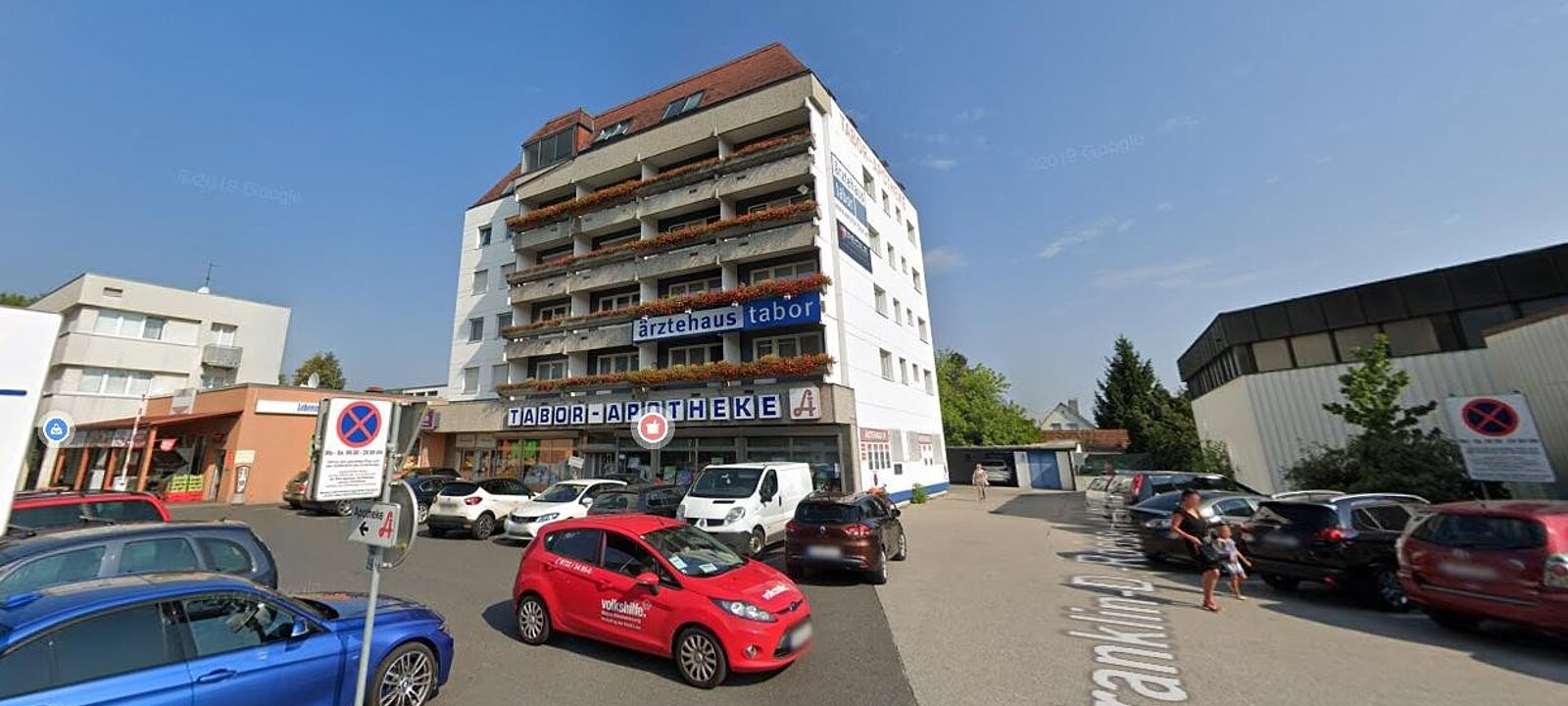 Es gibt ausreichend Parkplätze.