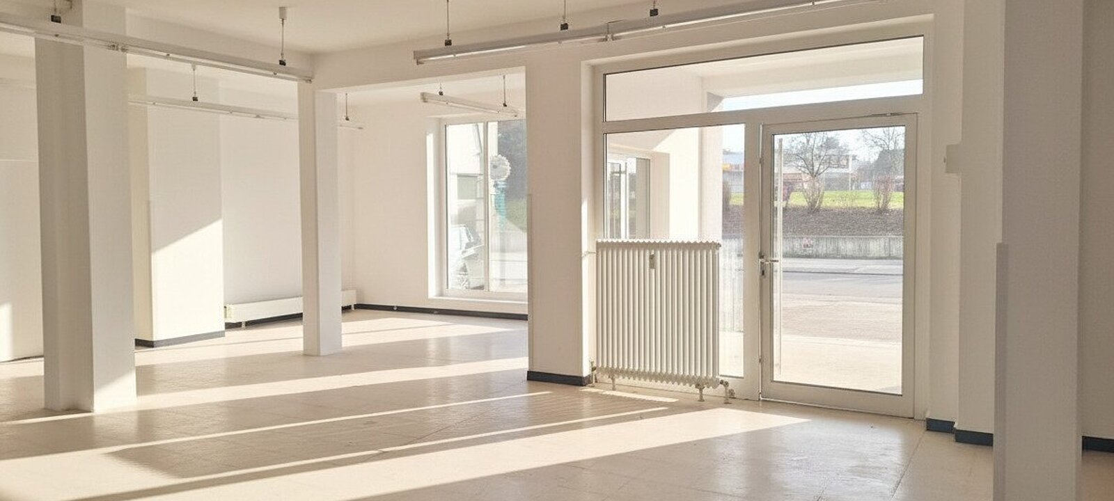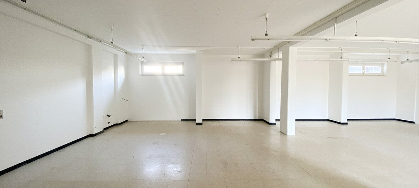 Die Immobilie überzeugt durch einen weitläufigen Hauptraum, der sich flexibel gestalten lässt, sowie ein separates Büro/Lager für eine effiziente Nutzung. Selbstverständlich sind Sanitäranlagen vorhanden. Ergänzt wird das Angebot durch eine eigene Garage und zusätzliche Stellplätze – ein praktisches Plus für Sie, Ihre Mitarbeiter und Kunden.