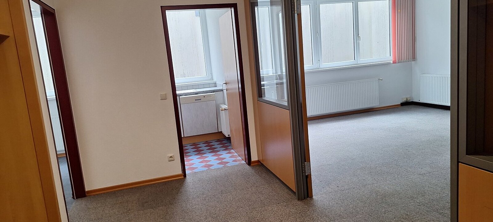 Die gut aufgeteilte Mieteinheit liegt im Tiefparterre und verfügt über eine Teeküche sowie Sanitäranlagen.