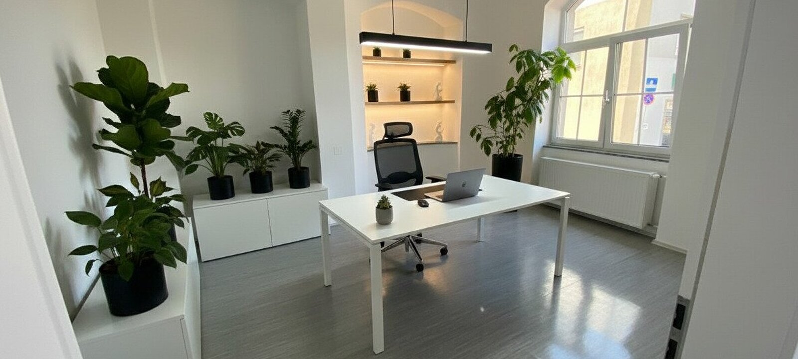 Die zentrale Heizungsanlage sorgt dafür, dass Sie in den kalten Monaten stets ein angenehmes Raumklima genießen können. Ihre Kunden und Mitarbeiter werden den Komfort zu schätzen wissen, während Sie sich auf das Wesentliche konzentrieren können – Ihr Geschäft.