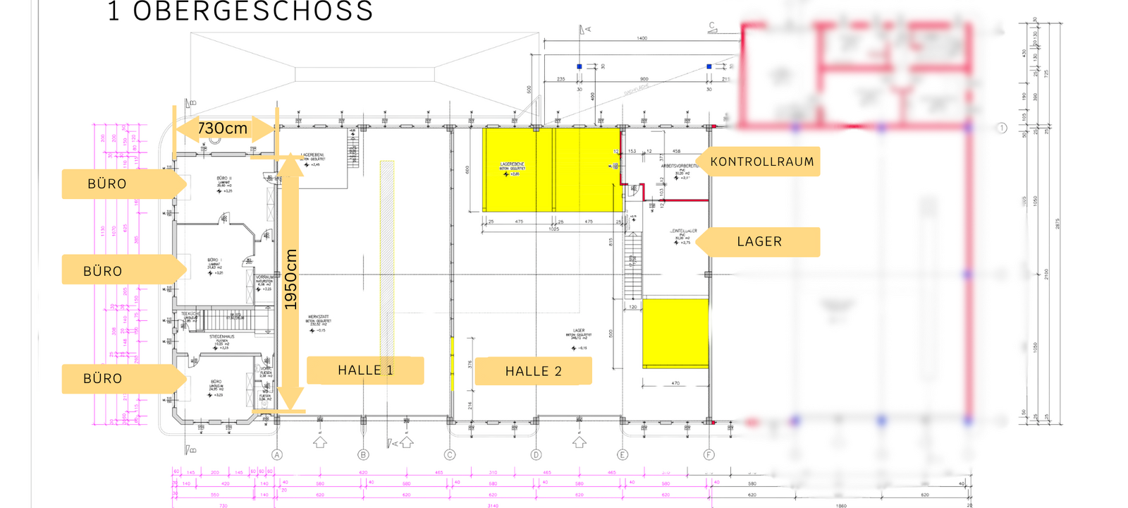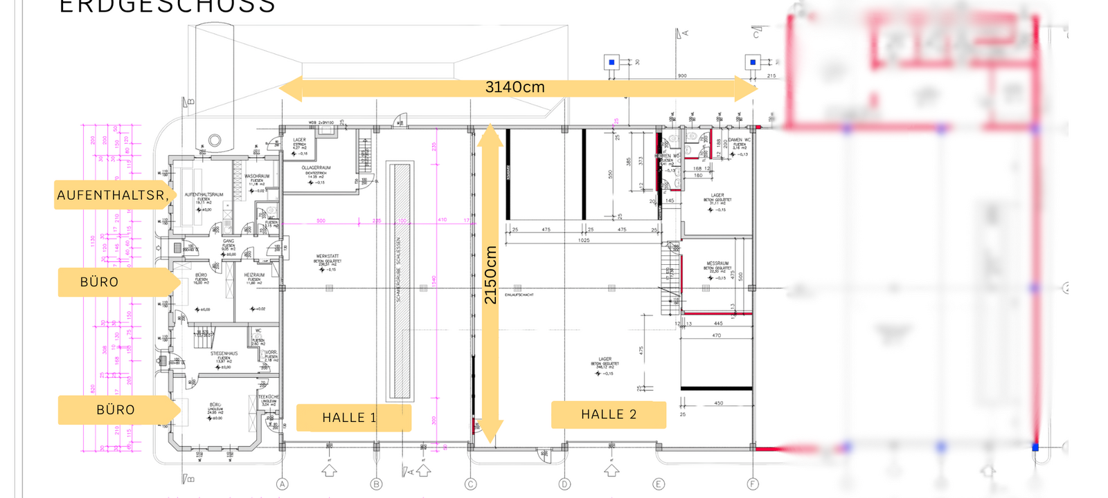 Büro- und Sozialflächen auf 210 qm (EG & OG), mehrere Büros, Sanitärräume, Mannschaftsraum, Teeküche etc.