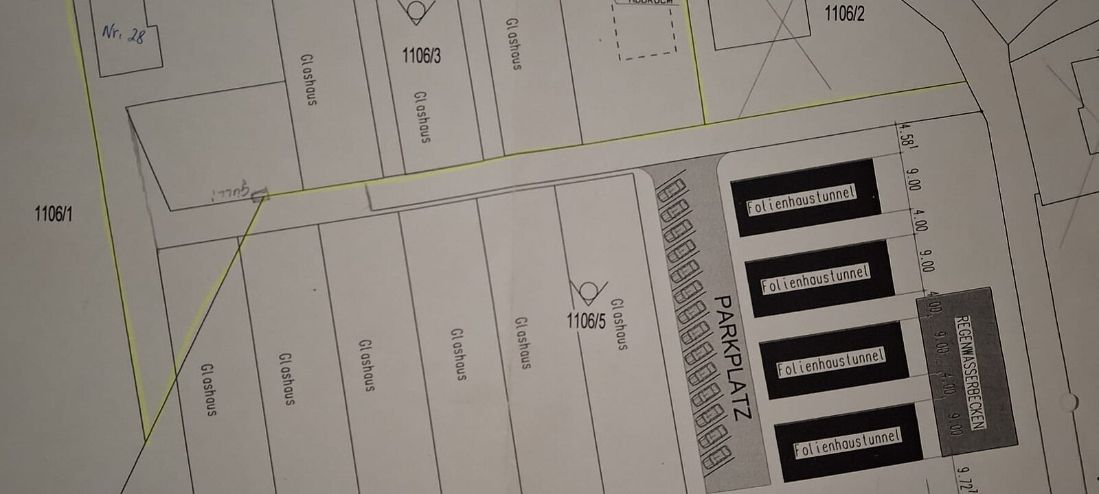 Wir haben am 1,5ha großen Betriebs-Standort einen Eigengrundanteil von ca. 5 TS m2 ( 1106/3 + 1106/4 ) und zusätzlich eine Pachtfläche von 10 TS m2 ( 1105/5 ) welche Grundbücherlich bis 2042 abgesichert , und darüber hinaus auch weiter verlängerbar ist ! Auf diesen beiden Flächen steht eine Gärtnerei für Direktvermarktung und Produktion mit ca. 6.800m verbauter Gewächshausfläche zur für Blumen und Pflanzen, sowie Gemüse & Kräuter. Zusätzlich existiert eine Arbeits & Lagerhalle samt Regallager und ein frostfreier Standplatz für die 2 Firmen-LKW.