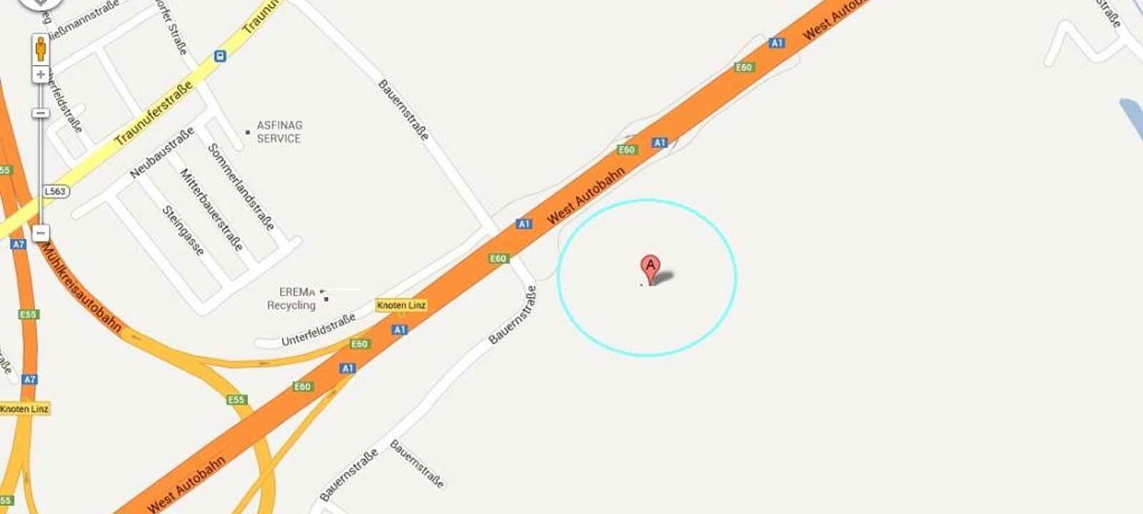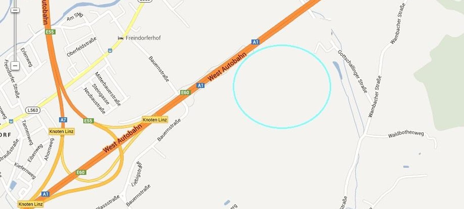 Es liegt zwischen der Bauernstraße, 4052 Ansfelden und der Gottschallinger Straße 88, 4030 Linz südlich der Westautobahn am Stadtrand von Linz.
