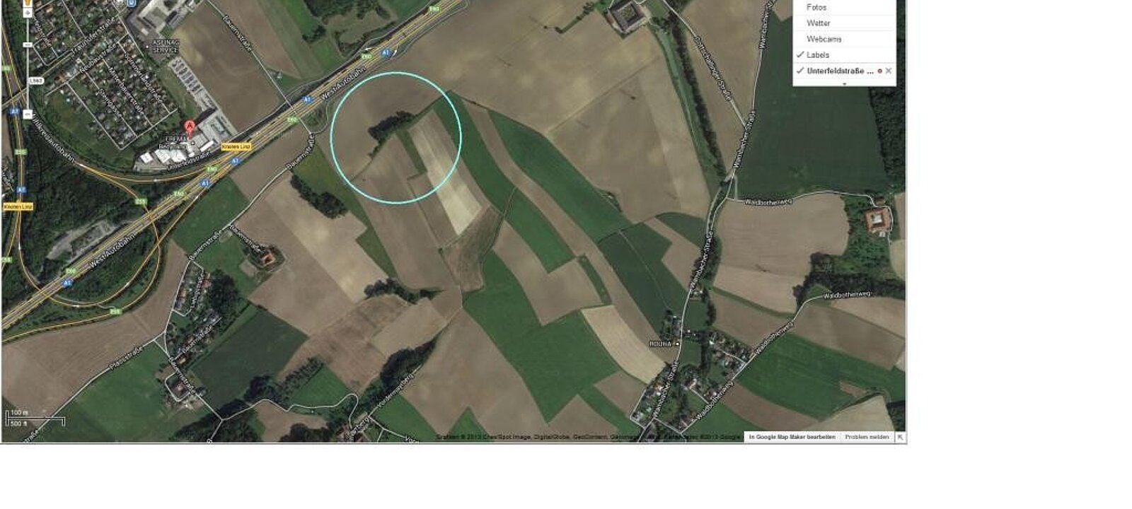 Circa 10 % des Grundstückes liegen in der Gemeinde Ansfelden, der Rest in Linz. Ebenso vorhanden sind die beiden Unterführungen durch die A1 in Richtung Ebelsberg-Gottschalling und Fischdorf.