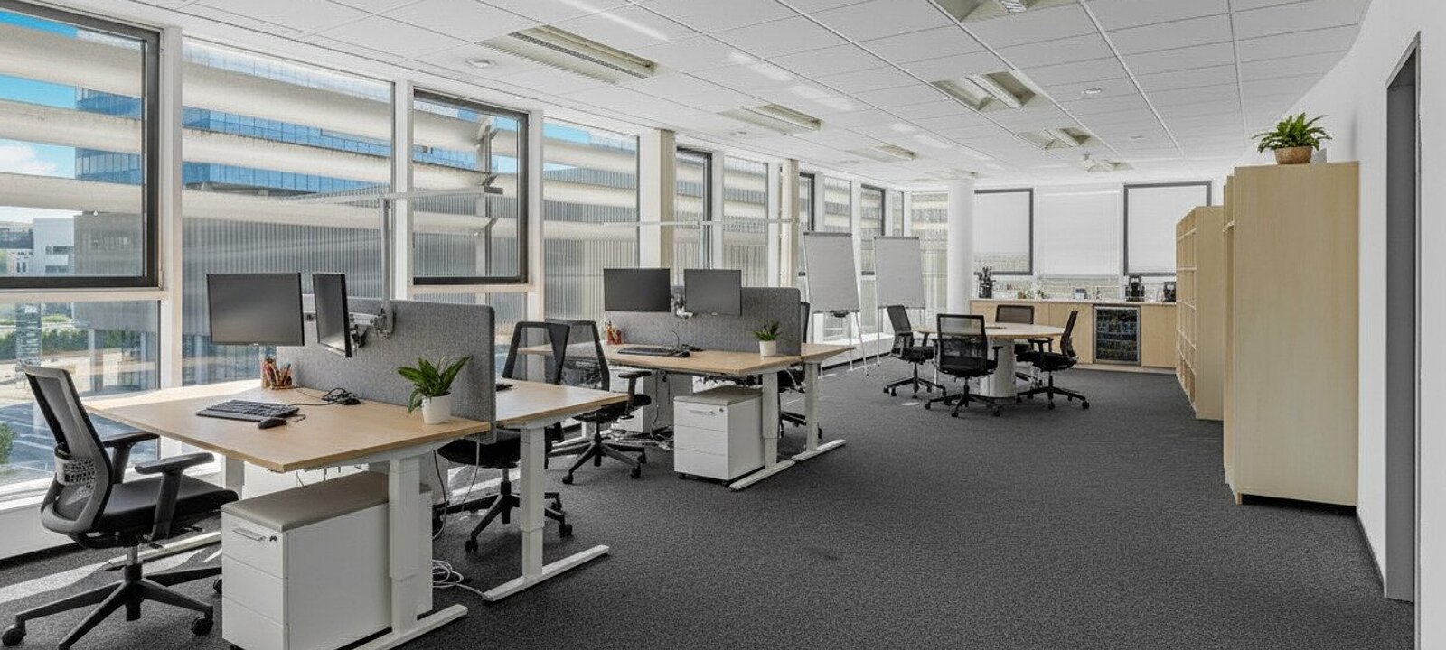 Für Ihre Einkäufe oder entspannte Mittagspausen stehen Ihnen Supermärkte, eine Bäckerei und ein Einkaufszentrum zur Verfügung. So haben Sie alles, was Sie brauchen, direkt vor der Tür. Der Standort bietet nicht nur eine hervorragende Infrastruktur, sondern auch ein lebendiges Umfeld, das zum Networking und zur Zusammenarbeit einlädt.