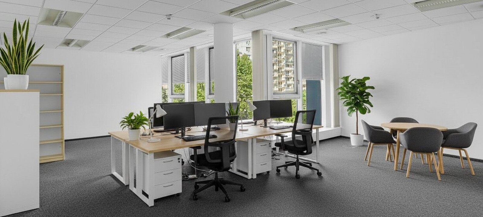 Die Bürofläche ist mit Fernwärme ausgestattet, was nicht nur umweltfreundlich ist, sondern auch für behagliche Wärme in den kühleren Monaten sorgt. Die hellen, lichtdurchfluteten Räume schaffen eine inspirierende Arbeitsatmosphäre, die Kreativität und Produktivität fördert.