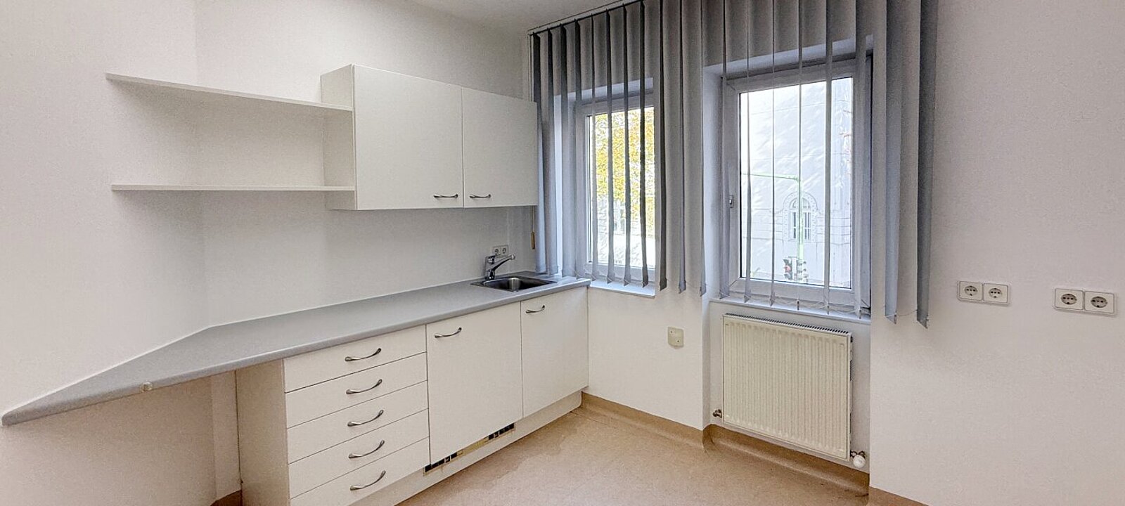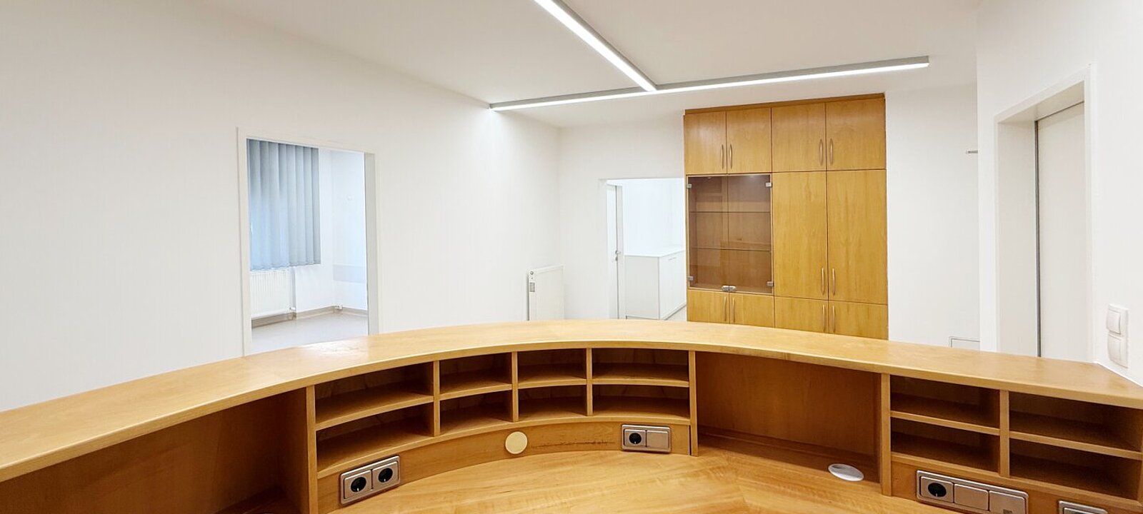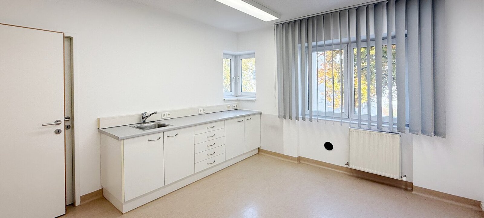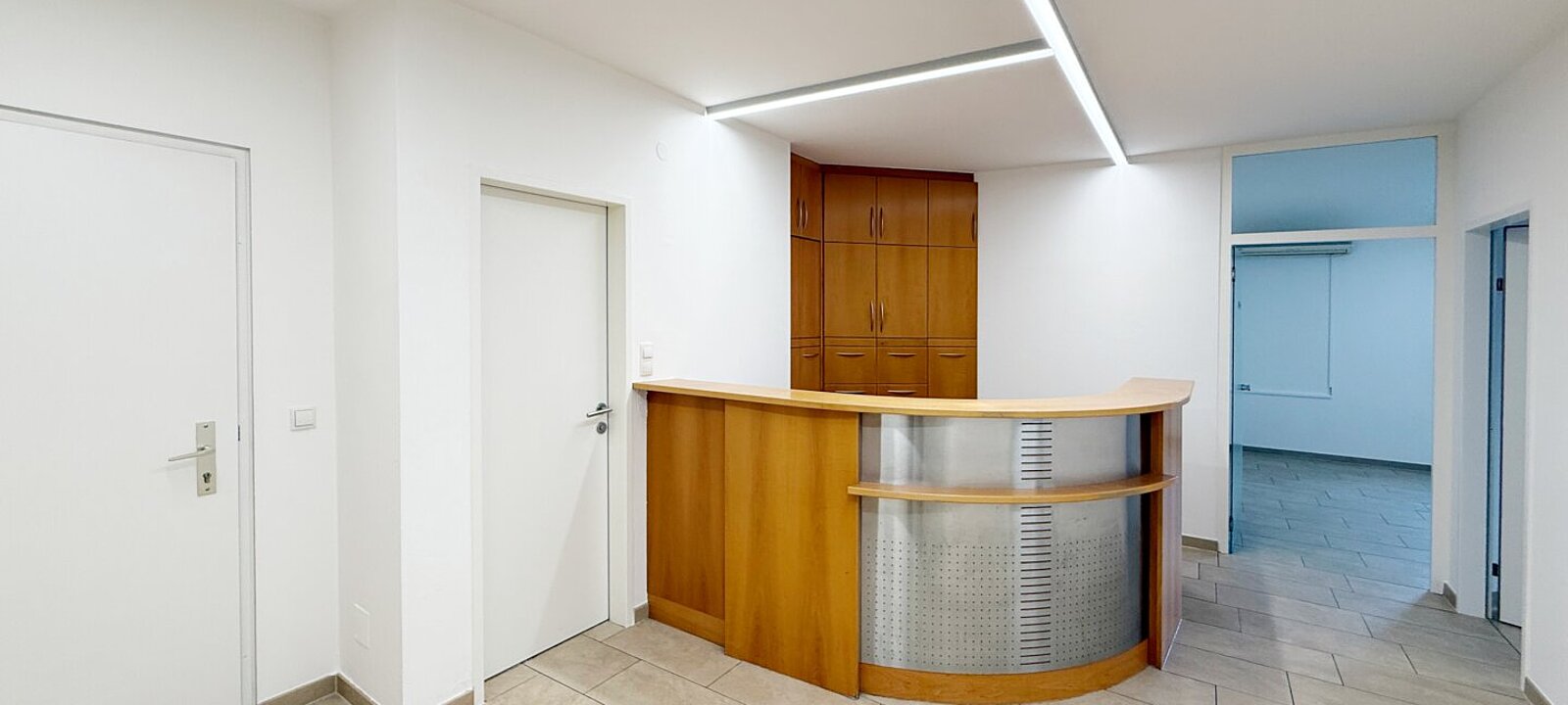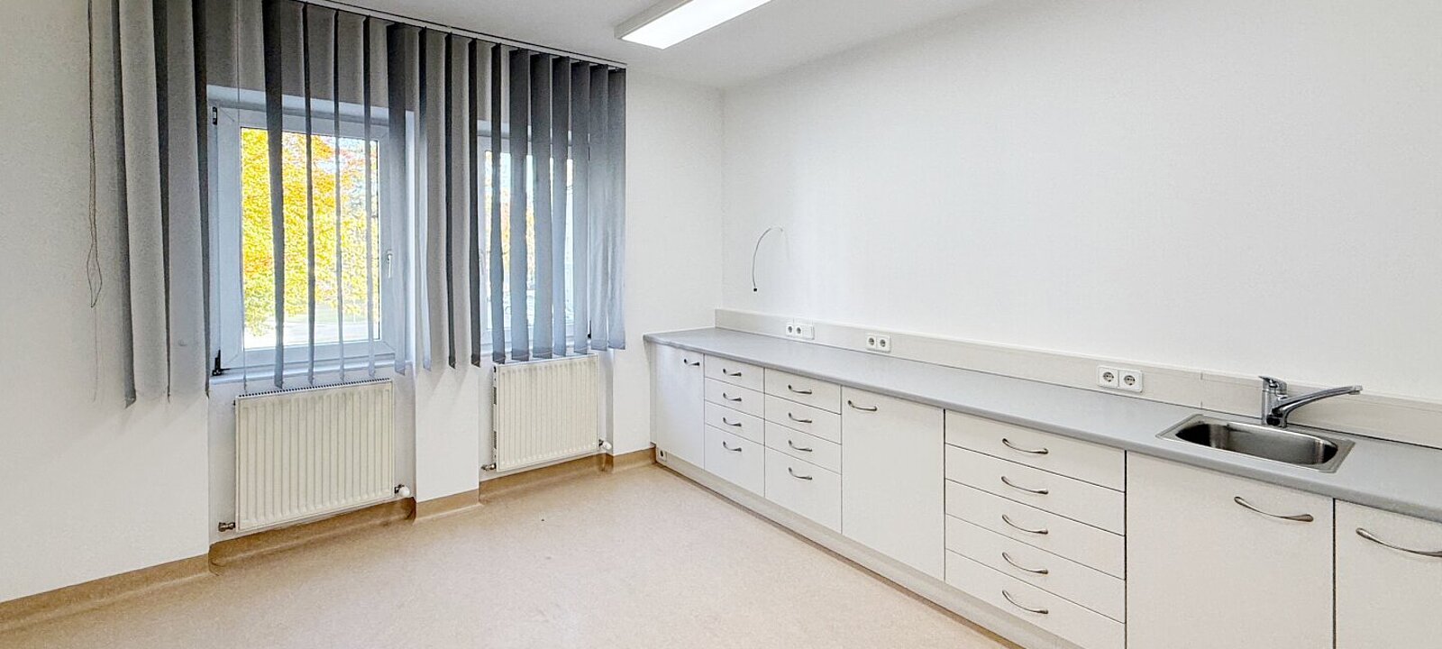 Raumaufteilung: 4 Ordinations-/Büroräume, Wartebereich, Labor, Teeküche, 2 WCs, Empfang und Flur