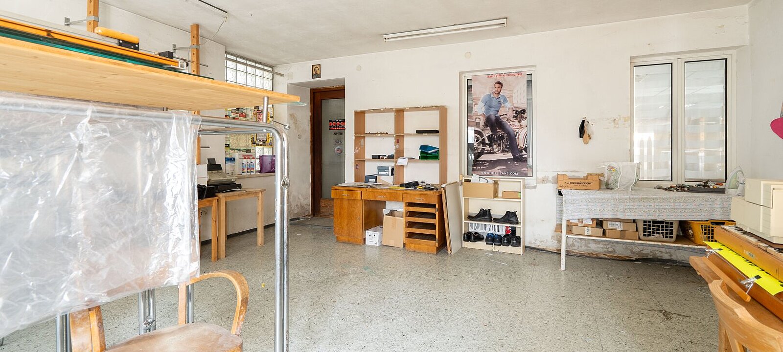 Geschäftsfläche ca. 130 m² - Werkstatt - WC - (großflächige Schaufenster straßenseitig)