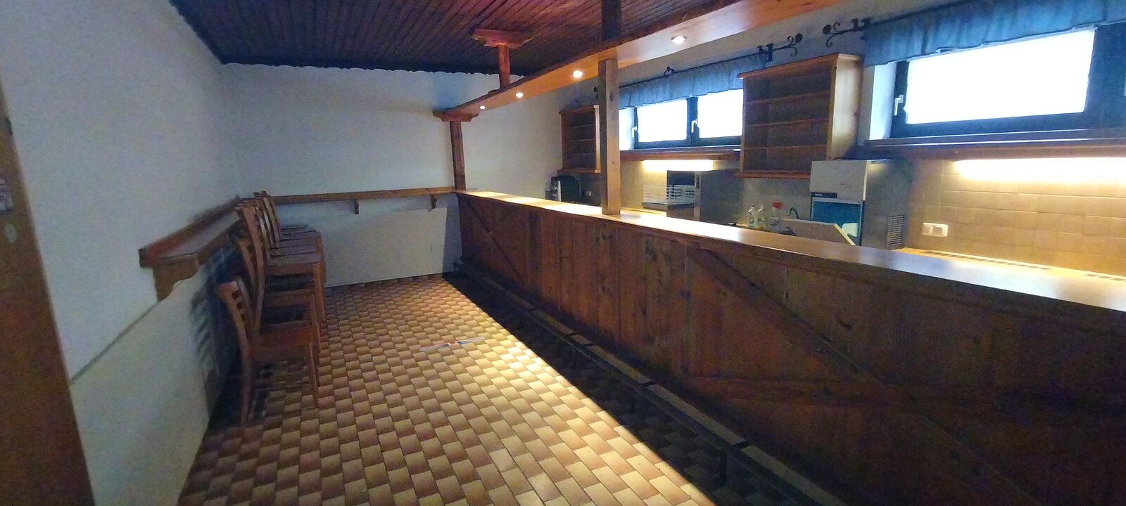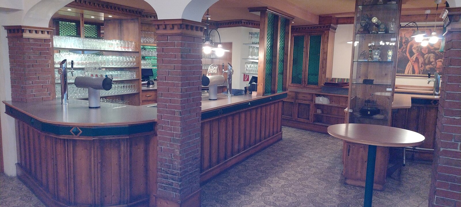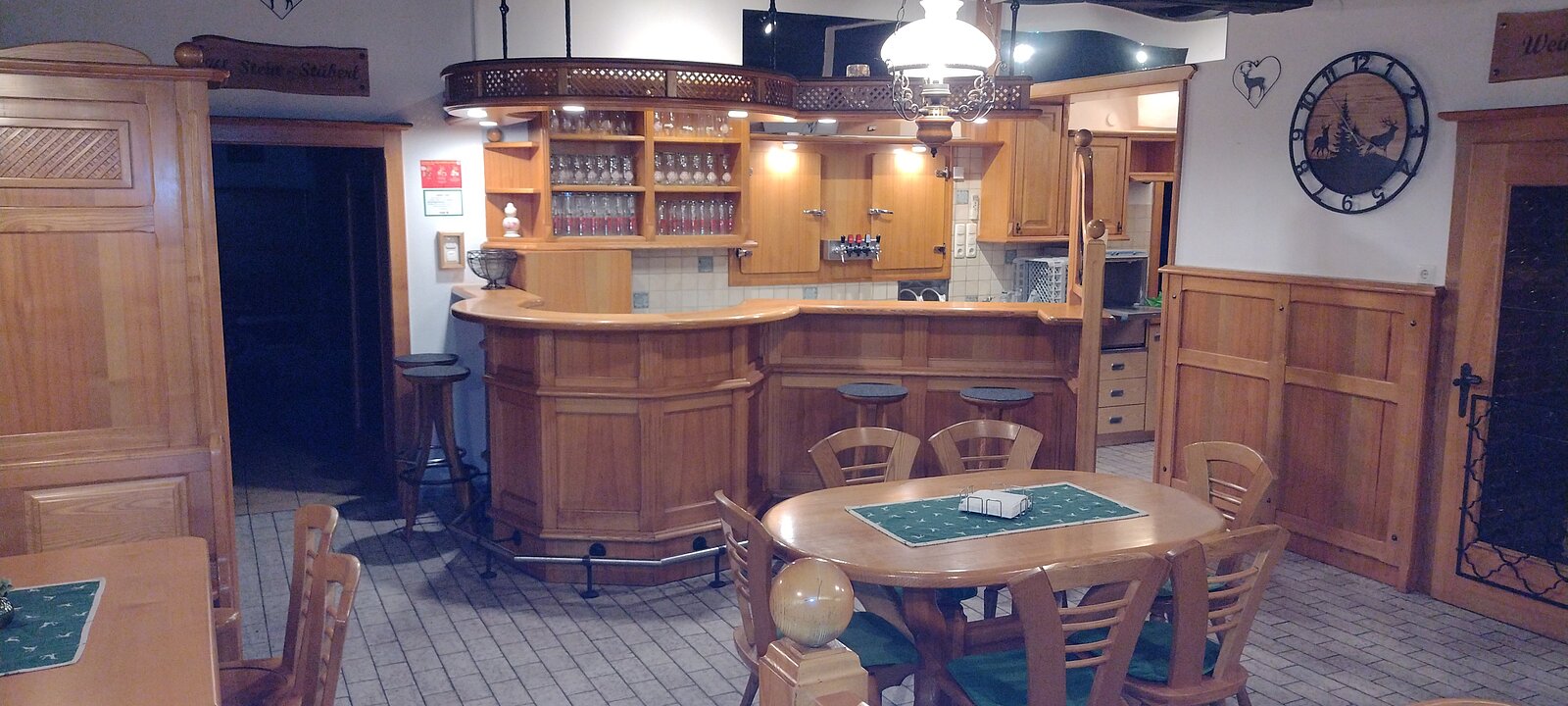 Im Hintergrund die Vereinsbar