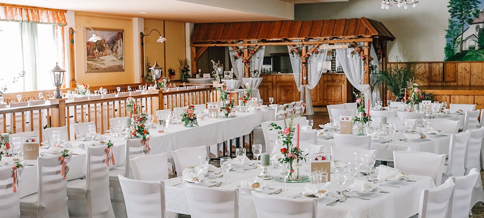 Einer der beliebtesten Veranstaltungssäle der Region mit insgesamt 400 Sitzplätzen für Hochzeiten und jede Art von Veranstaltungen und Events.