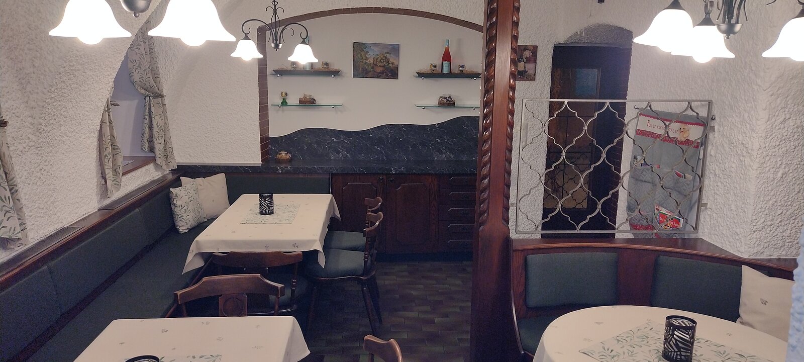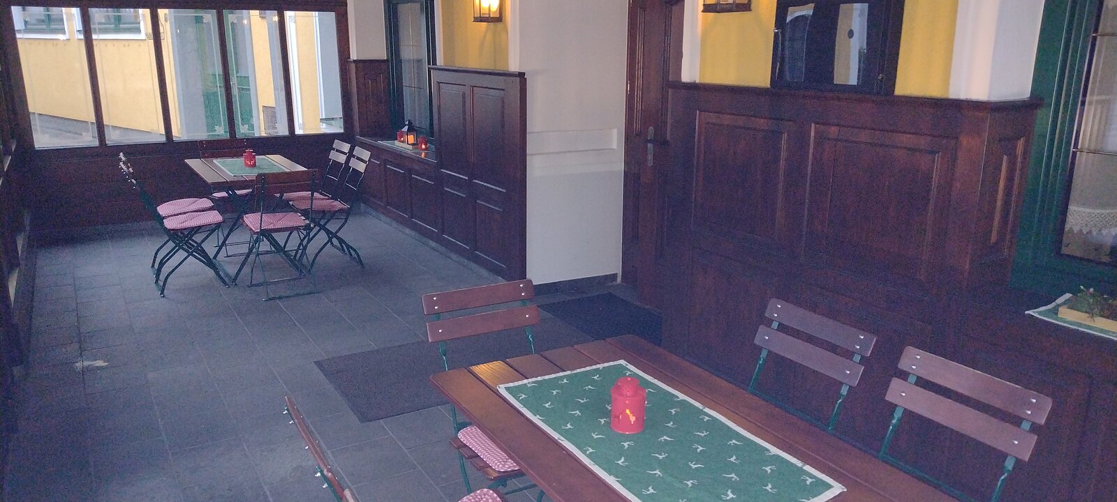 Im Hintergrund der Restaurantbereich