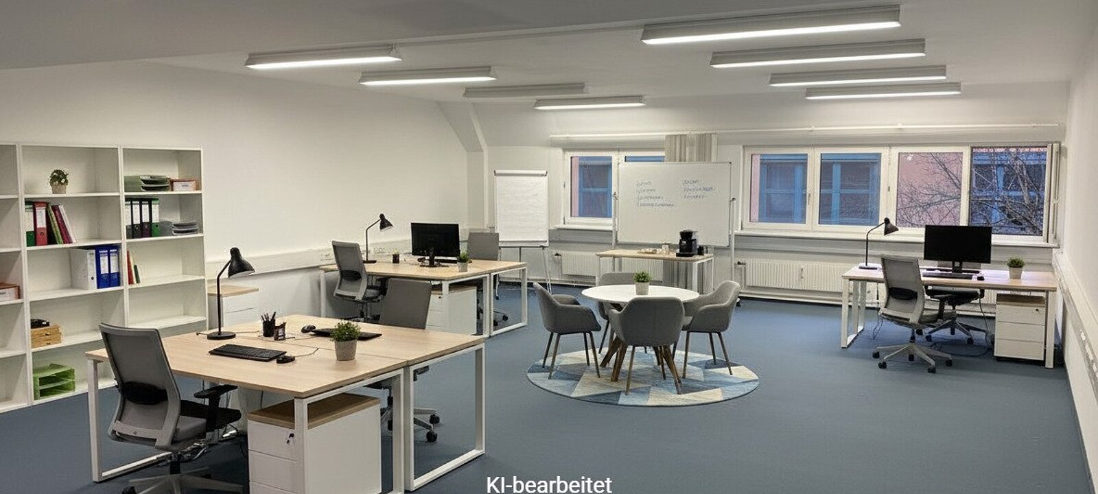 Ihre Zufriedenheit und Komfort ist uns sehr wichtig - sämtliche Büros werden vor der Übergabe exklusiv für unsere Kunden saniert und im Zuge dessen mit unserem hochwertigen und modernen Laminatboden in der Farbe Grau mit Holzstruktur ausgestattet.