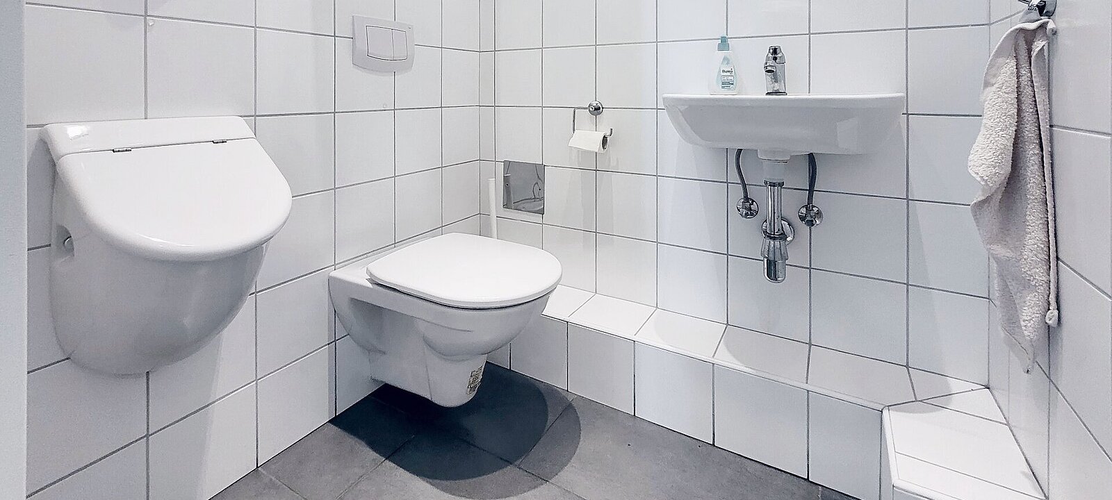 Die Fläche ist zentral begehbar und gliedert sich in eine linke und eine rechte Einheit. Durch die beidseitige Ausstattung mit WC und Küche sowie jeweils separaten Eingangstüren ist eine getrennte Nutzung oder Vermietung jederzeit möglich.