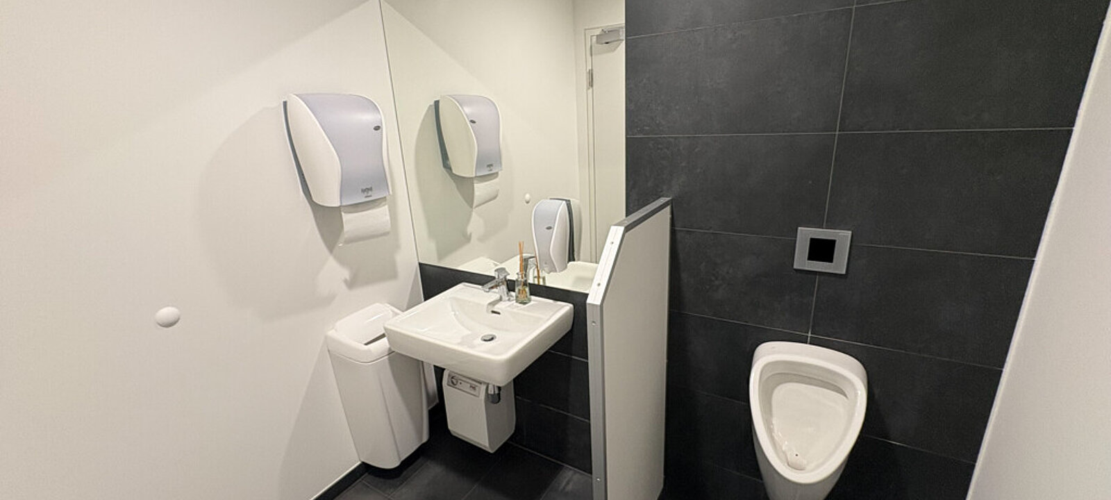 Darüber hinaus stehen Mitarbeiterfahrräder im hauseigenen Fahrradraum sicher abgestellt, und es sind Duschen vorhanden. Ausreichend KFZ-Stellplätze sind sowohl in der Tiefgarage als auch im oberirdischen Parkbereich verfügbar.