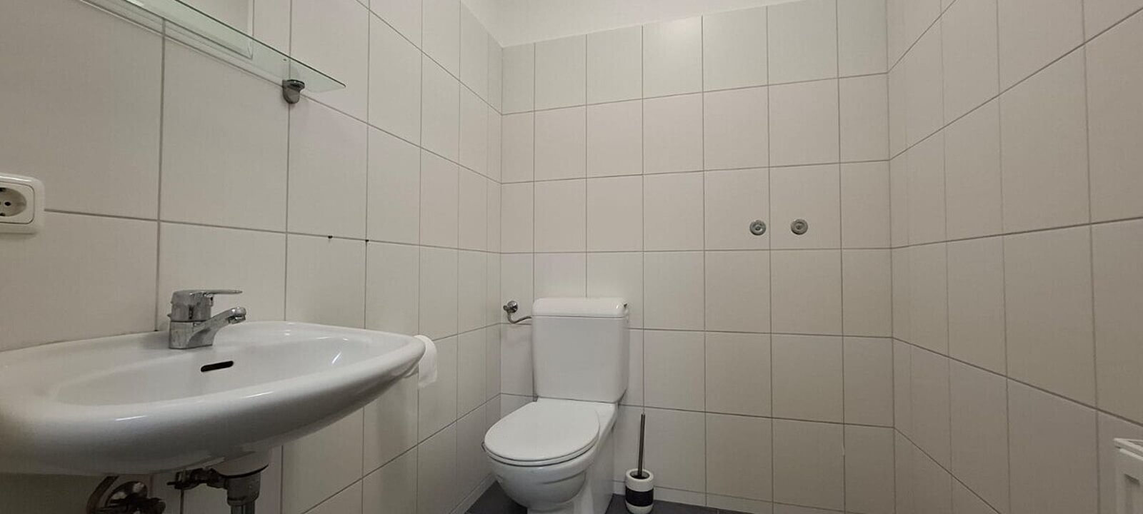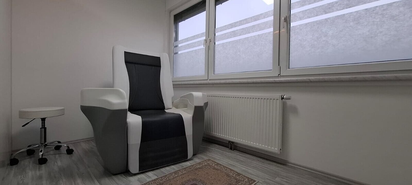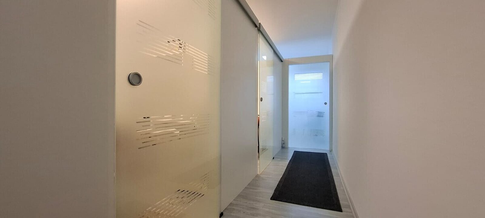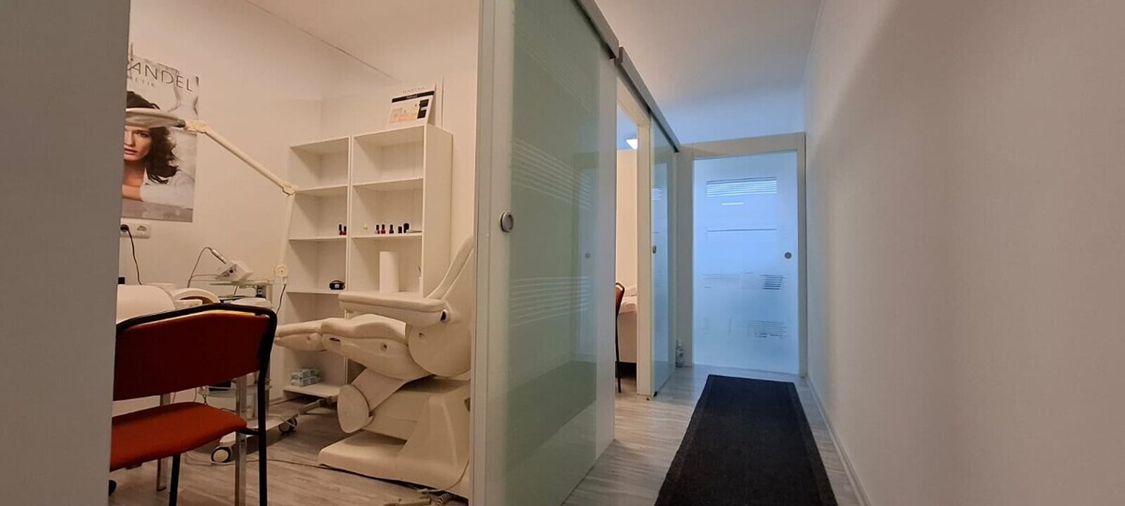 Das Objekt verfügt über eine Nutzfläche von ca. 36 m² und ist aktuell in drei abgetrennte Behandlungsräume, einen ansprechenden Empfangsbereich sowie ein separates WC unterteilt. Die barrierefreie Erreichbarkeit des Gebäudes gewährleistet einen komfortablen Zugang für Kund:innen und Mitarbeiter:innen.