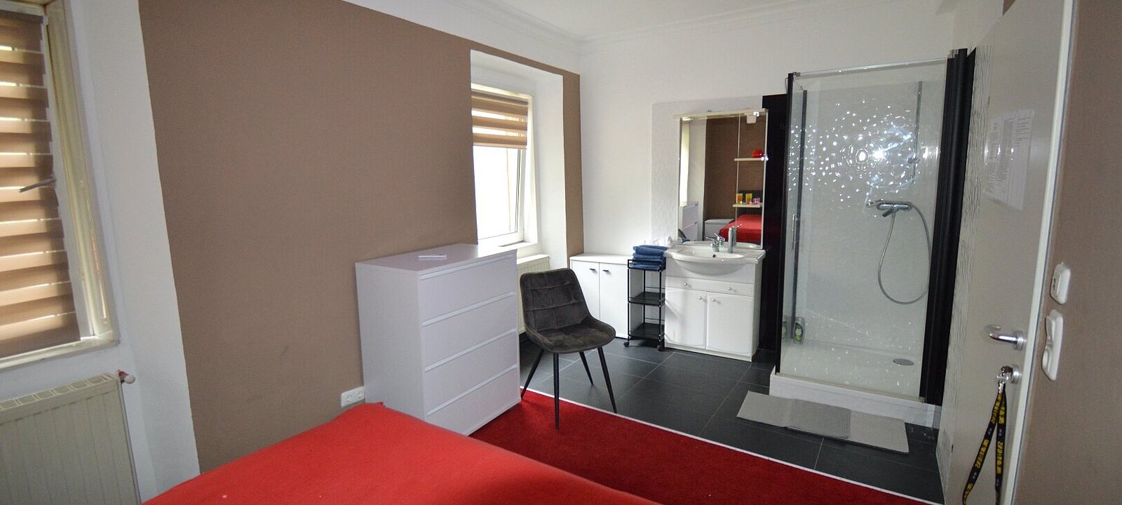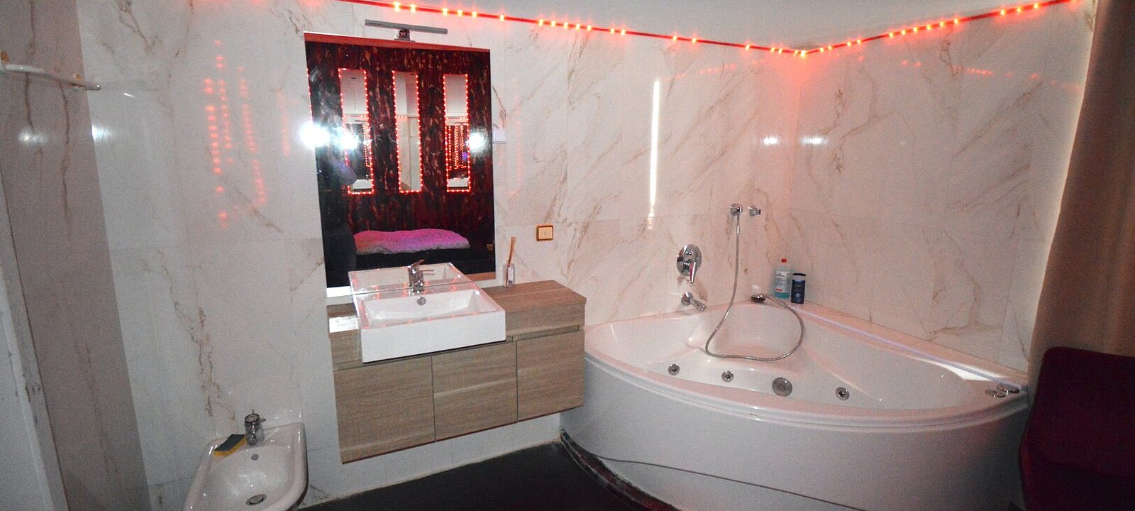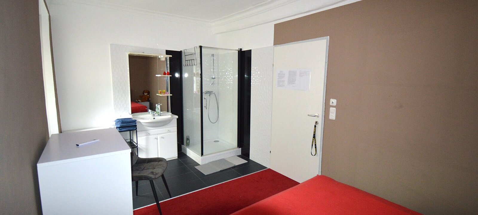 Im Obergeschoss erwarten Sie elf stilvoll gestaltete Zimmer, die großteils mit Dusche, Waschbecken und Whirlpool ausgestattet sind. Ergänzt wird dieses Niveau durch private Rückzugsräume für Betreiber und Mitarbeiter.