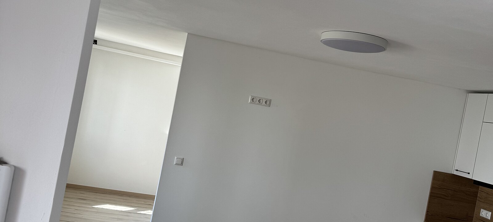 im Vordergrund ein Zimmer mit volleingerichteter, neuer Küche und dahinter mit Fenster in den Garten gelegener 2. Raum. Hier ist auch jederzeit eine Türe einbaubar falls gewünscht.