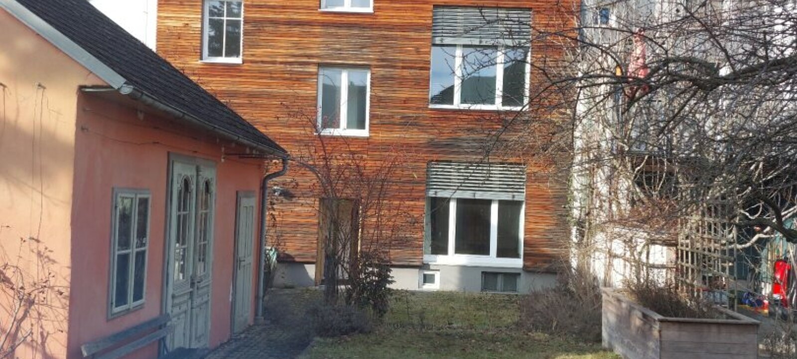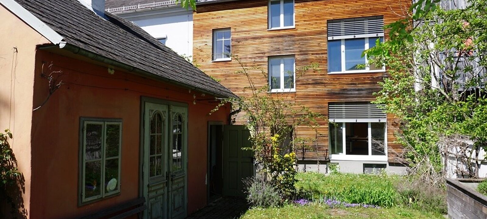 * Grüne Oase: Ein gepflegter Hausgarten mit Ziersträuchern und altem Baumbestand bietet Rückzug mitten in der Stadt.