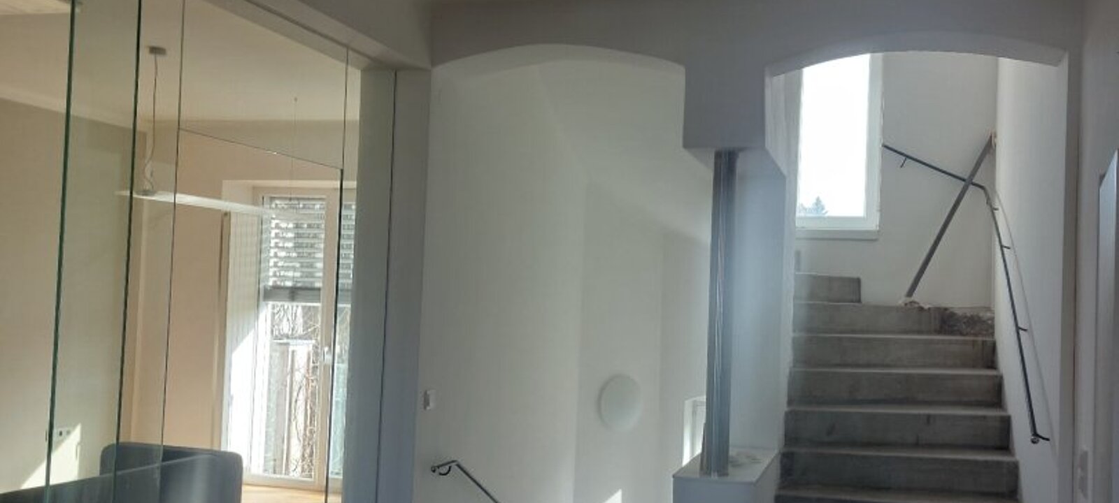 * Obergeschoss (ca. 72 m²): Hier beeindruckt ein großzügiges Loft-Ambiente (ehem. Großraumbüro) sowie ein weiteres Zimmer. Das ehemalige Archiv ist bereits für den Ausbau zum Badezimmer vorbereitet.