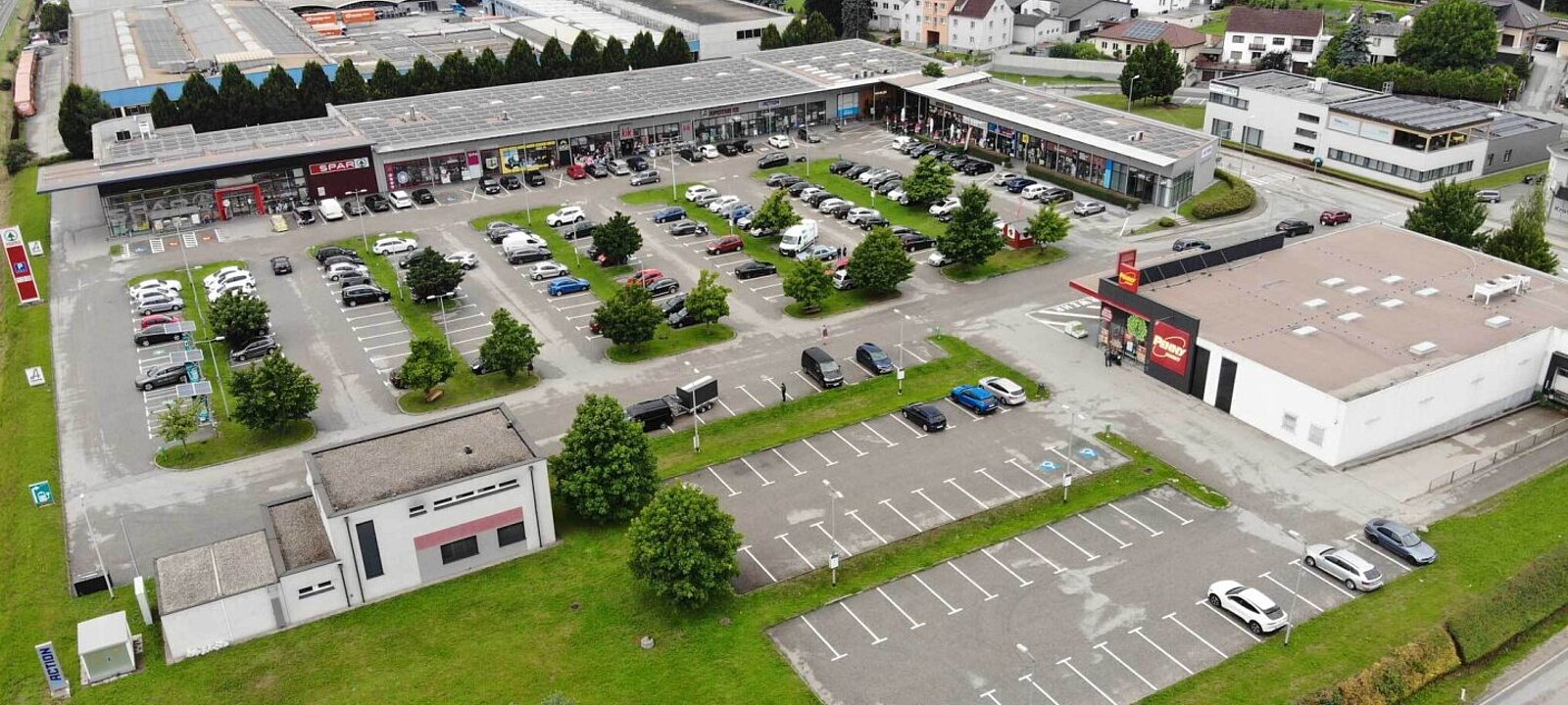 Spar, Penny, Bipa, KIK, Bergsport Outlet, Apotheke, Action, Bäckerei Cafe Winkler, Kebap und Pizzeria.