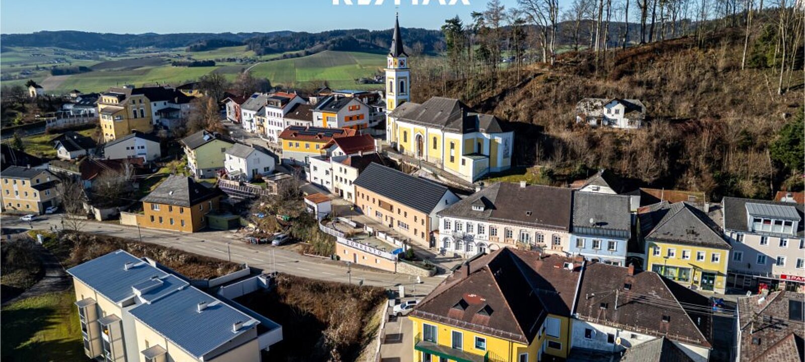 Geschäfte des täglichen Bedarfs, Ärzte, Kindergarten und Schulen, Anbindung an öffentliche Verkehrsmittel, Gasthäuser etc. sind fußläufig erreichbar.