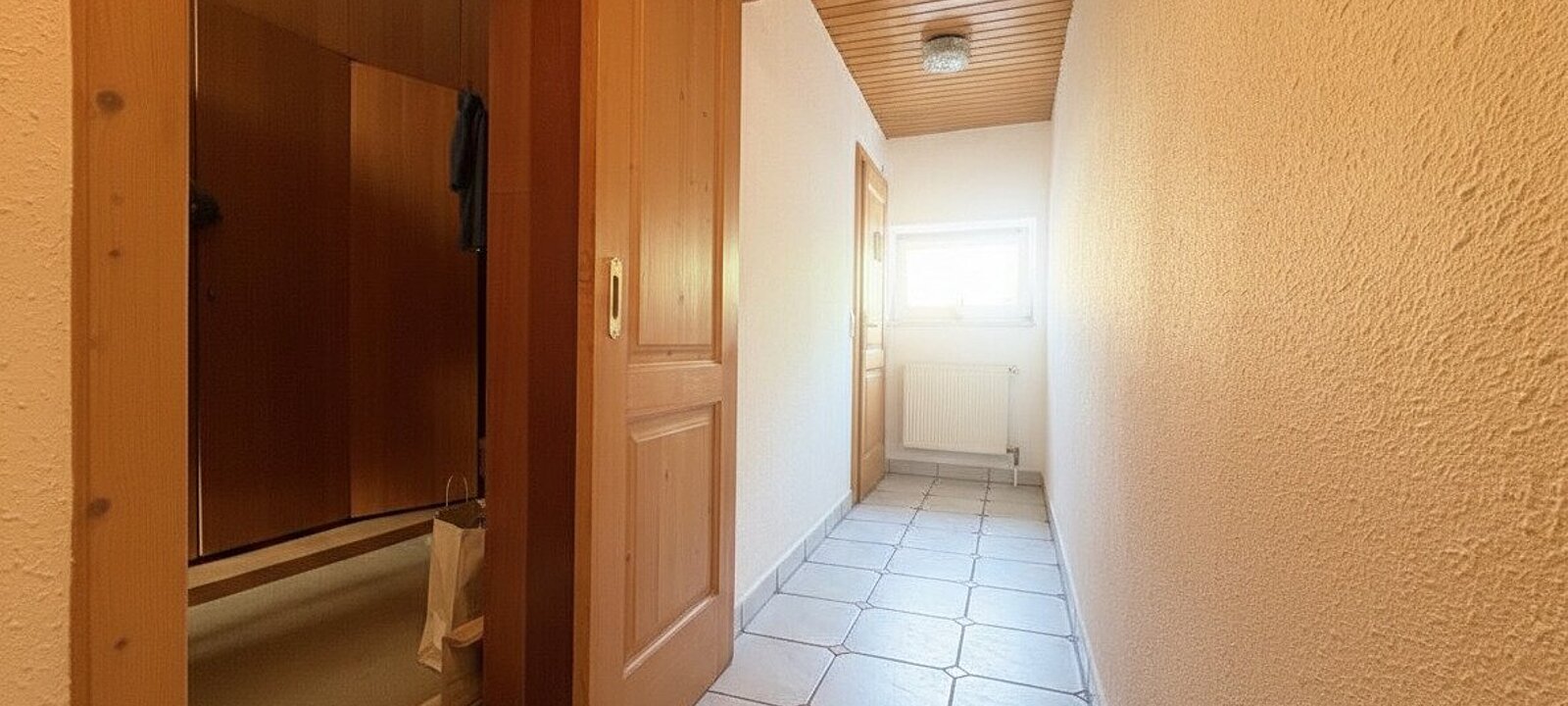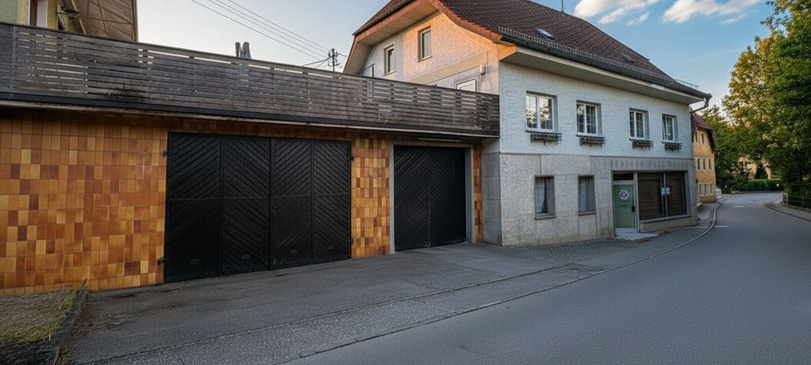 Zusätzlich zu dieser oben beschriebenen Liegenschaft kann eine verbundene, angebaute eigene Immobilie mit ca. 1.000 m² Haus- Grund- bzw. Waldfläche erworben werden. Diese umfasst ein älteres Haus mit ca. 107 m² Lagerflächen sowie 2 Wohnungen mit 69 m² (2 Zimmer + Küche) und 73 m² (3 Zimmer) Wohnfläche, die auch zusammengelegt werden können.