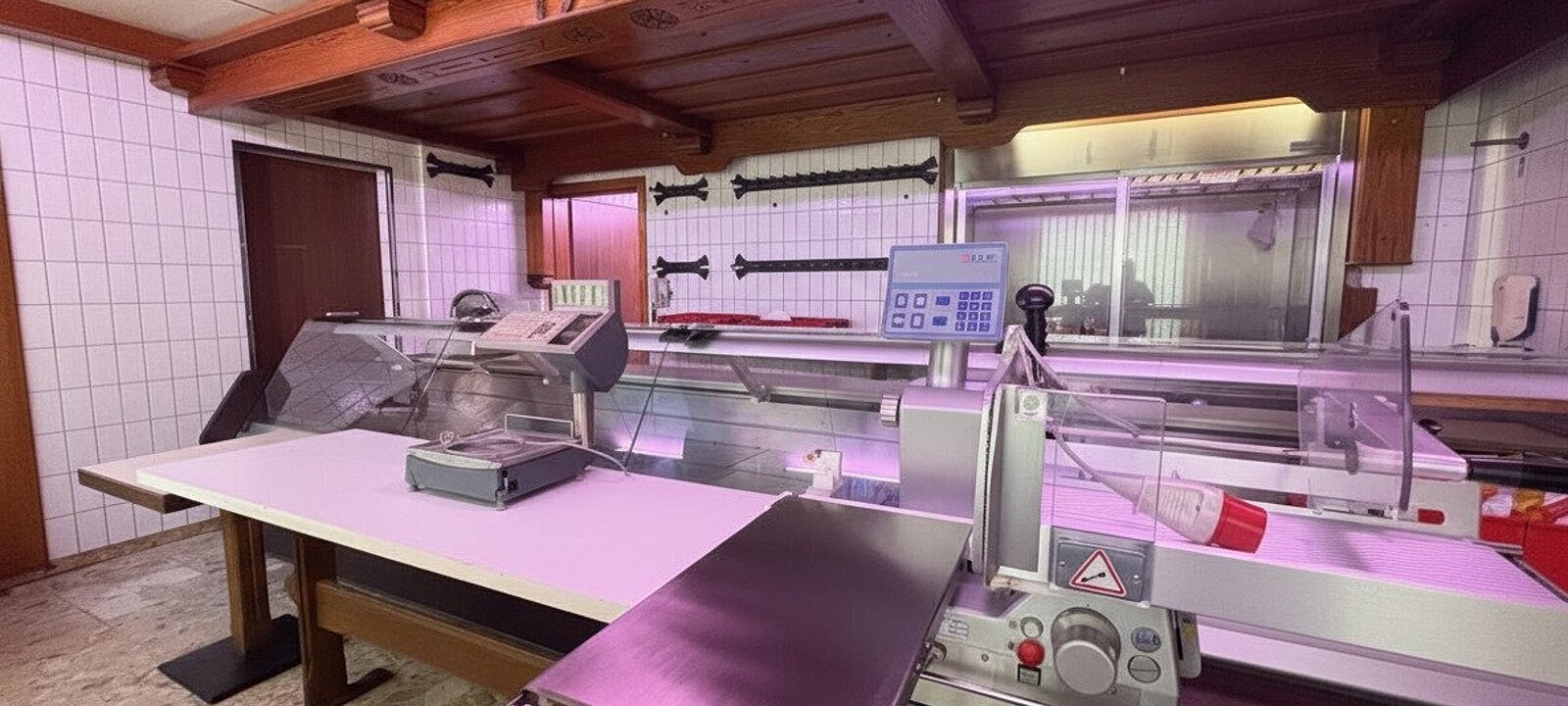 Die bis vor kurzem genutzten Flächen wie Verkaufsraum, Büro, Küche, Kühlräume, Verarbeitungsräume und Doppelgarage umfasst ca. 290 m² sowie zusätzliche Außenflächen von ca. 130 m². Diese Flächen wurden als Fleischerei genutzt und können individuell adaptiert werden. Da die Liegenschaft im Kerngebiet liegt, müssen andere betriebliche Anlagen genehmigt werden.