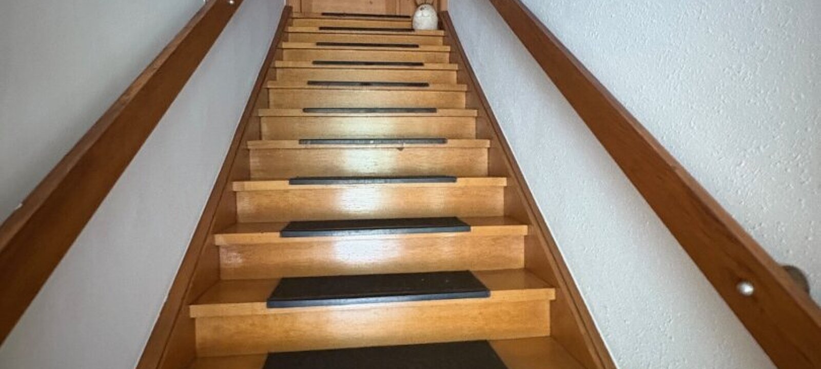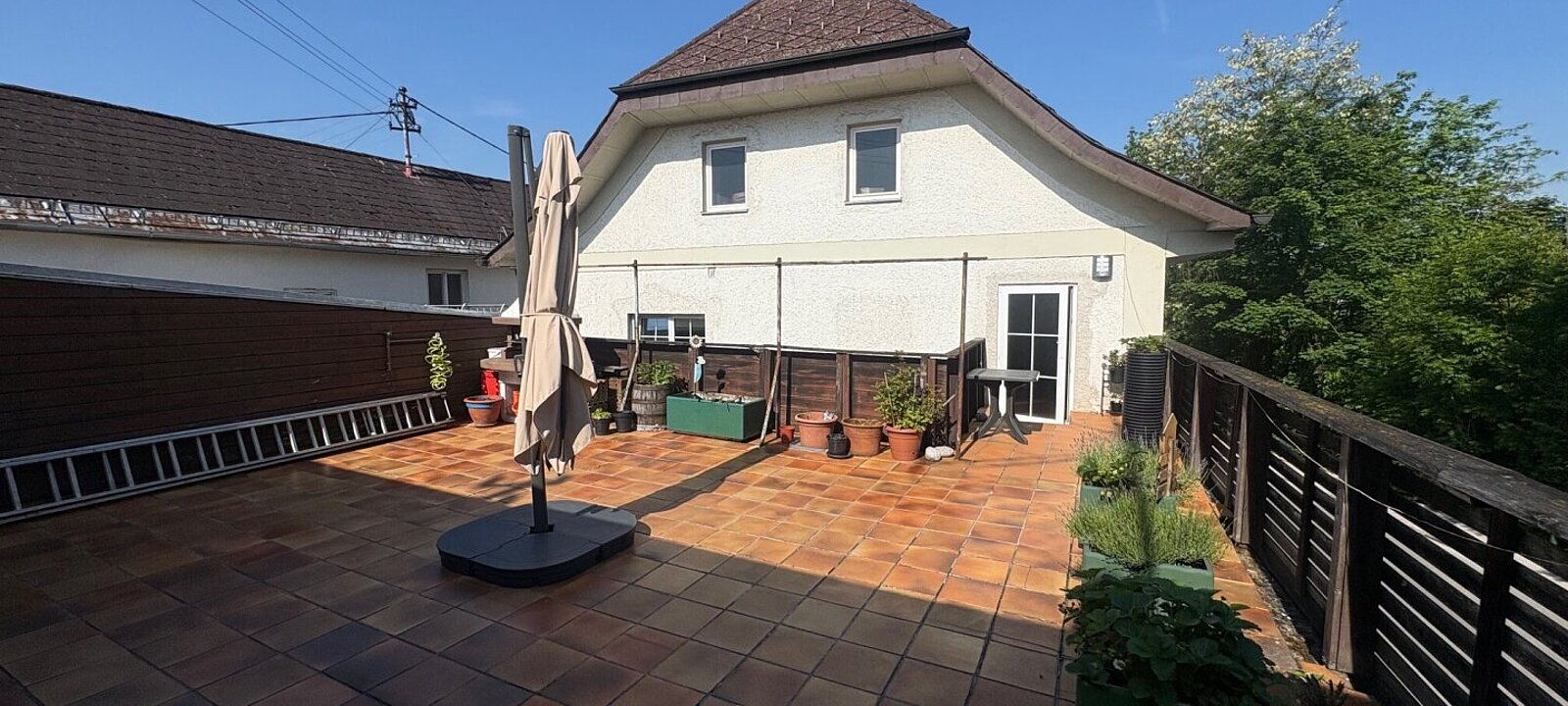Eine Wohnung mit 5 Zimmern liegt im Obergeschoß des Gebäudes und umfasst ca. 115 m² Wohnfläche. Zusätzlich gehört eine Terrasse mit ca. 61 m² zu dieser Wohnung.