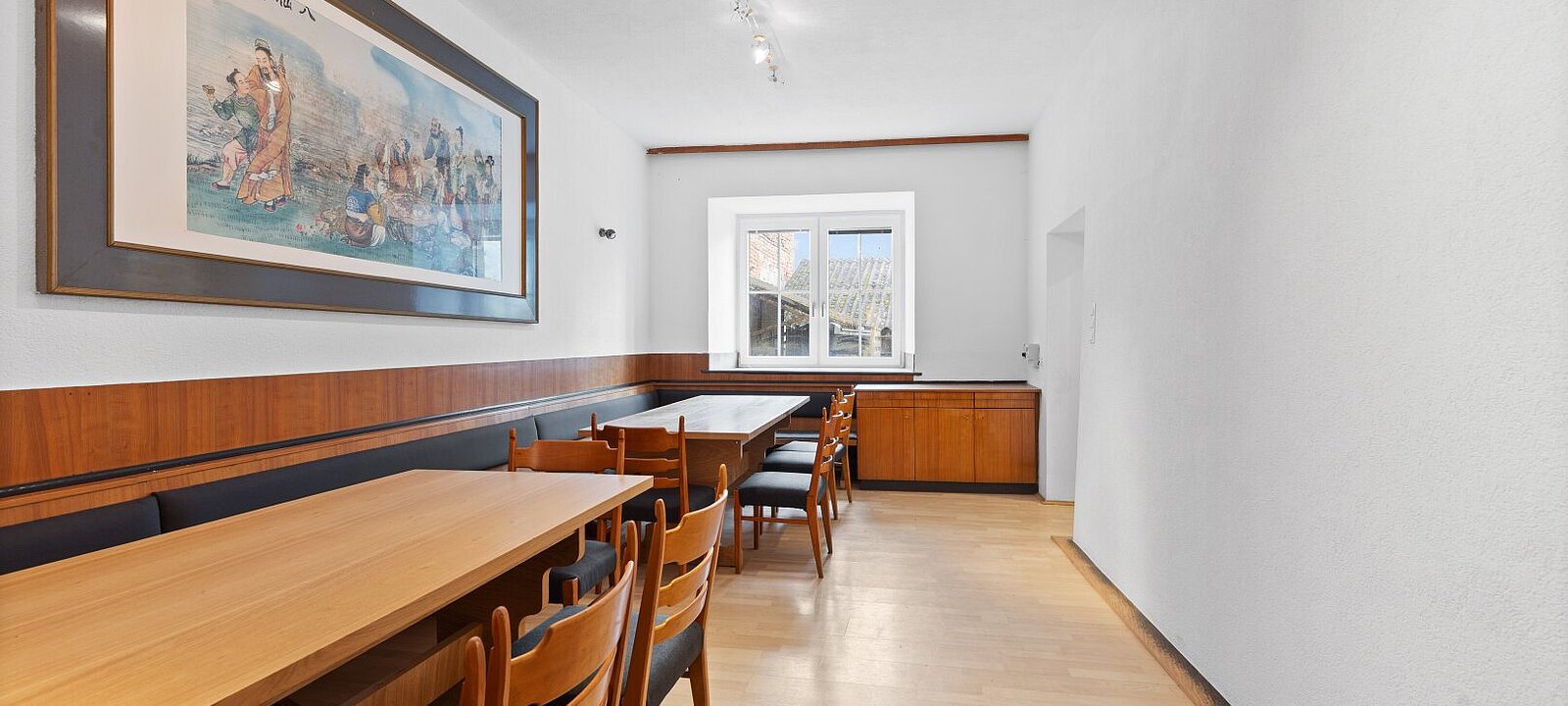 Der Gewerbebereich bietet ideale Voraussetzungen für eine Gastronomie oder eine alternative gewerbliche Nutzung. Die Räumlichkeiten überzeugen durch ihren Charme und die hervorragende Lage direkt am Marktplatz.