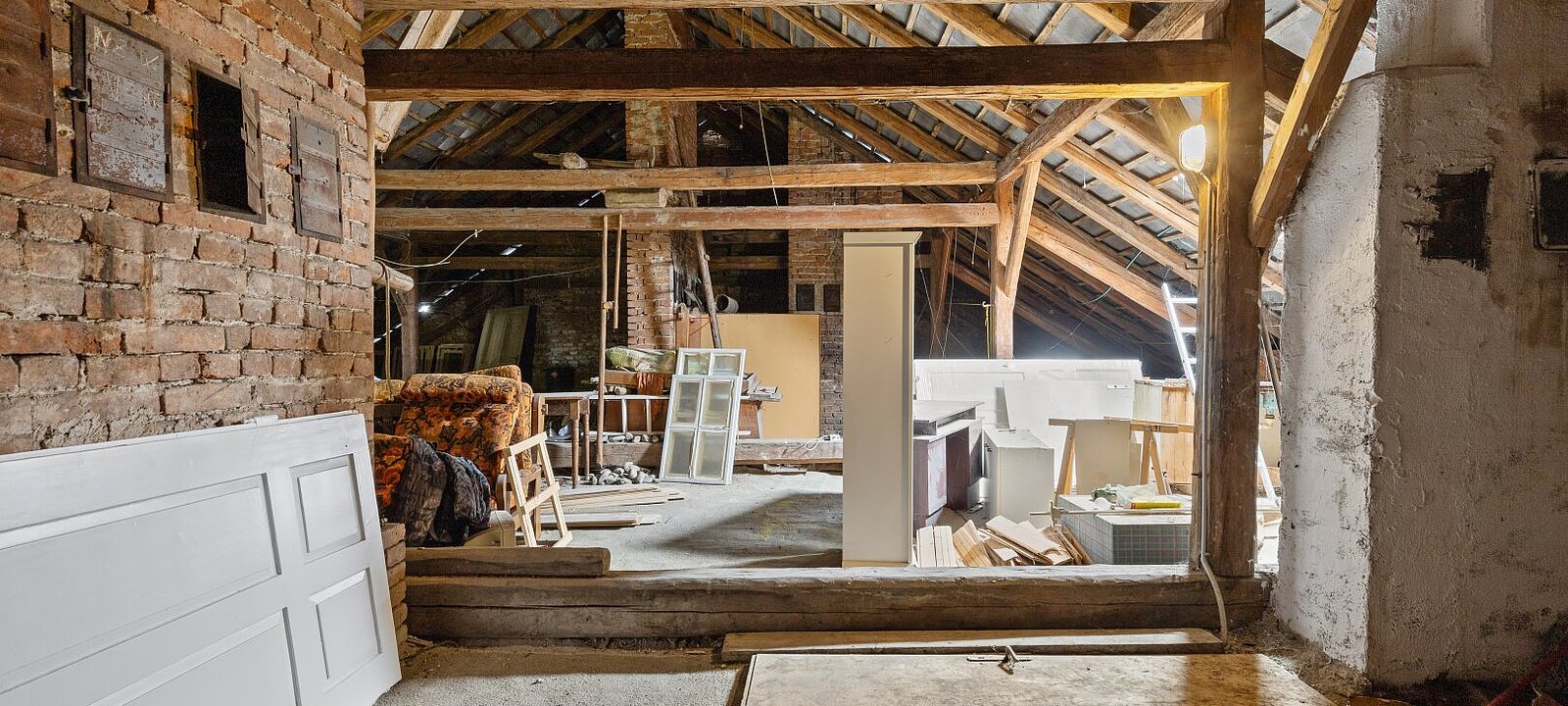 Der Dachboden bietet ein besonders attraktives Entwicklungspotenzial. Mit rund 195 m² Fläche besteht – vorbehaltlich der behördlichen Genehmigungen und baurechtlichen Voraussetzungen – die Möglichkeit, eine großzügige Wohnung oder mehrere zusätzliche Wohneinheiten zu schaffen.