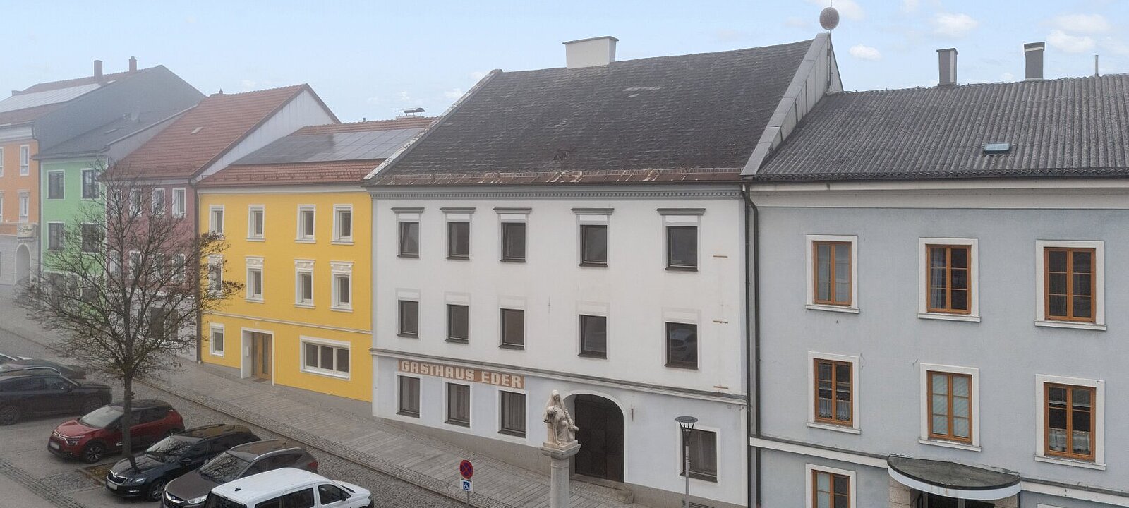 Direkt am historischen Marktplatz von Haag am Hausruck befindet sich dieses charmante Mehrfamilienhaus mit großzügiger Gewerbefläche, vier gut geschnittenen Wohnungen sowie einer beeindruckenden Ausbaureserve im Dachgeschoss.