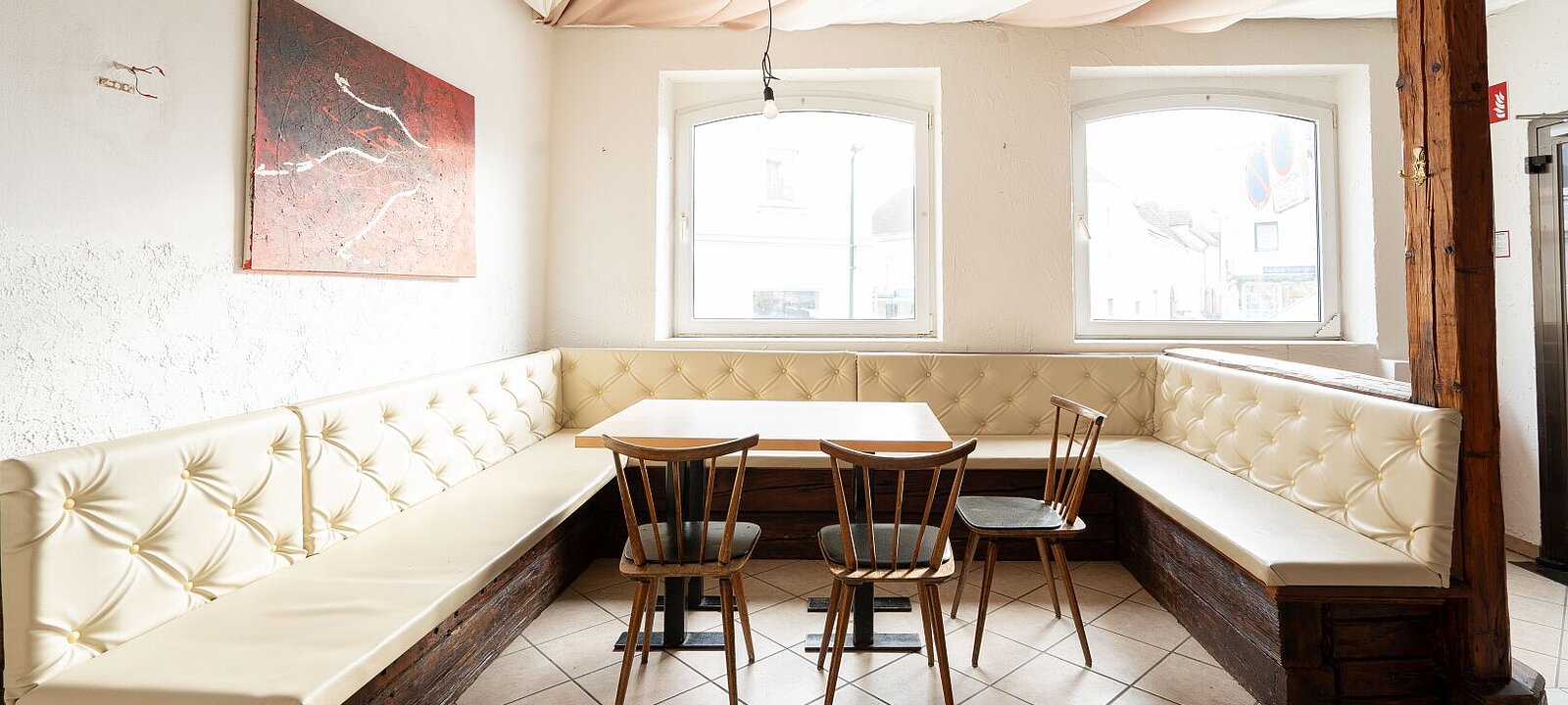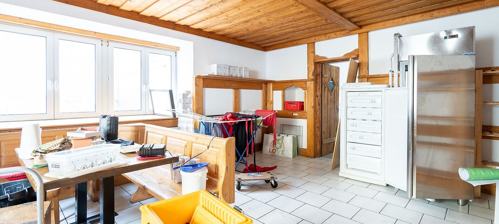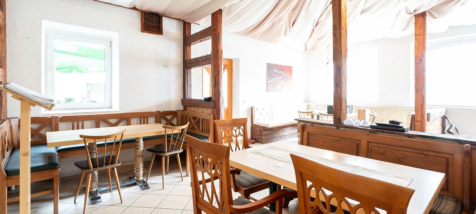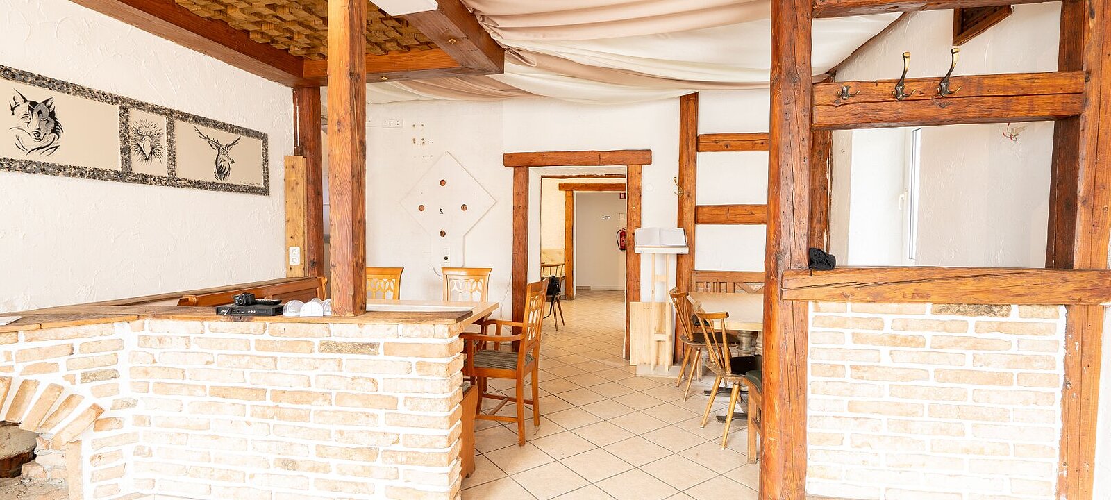Das Gebäude umfasst eine großzügige Gewerbefläche im Erdgeschoss samt Kleinwohnung sowie Zimmer im ersten Obergeschoss. Die Immobilie wurde in den letzten Jahren teilweise saniert, darunter die Heizung und die Zimmer/Gaststätte. Das Dachgeschoss bietet weiteres Potenzial zur Ausbaumöglichkeit, z. B. in Form von Kleinwohnungen oder einem zusätzlichen Gästebereich.