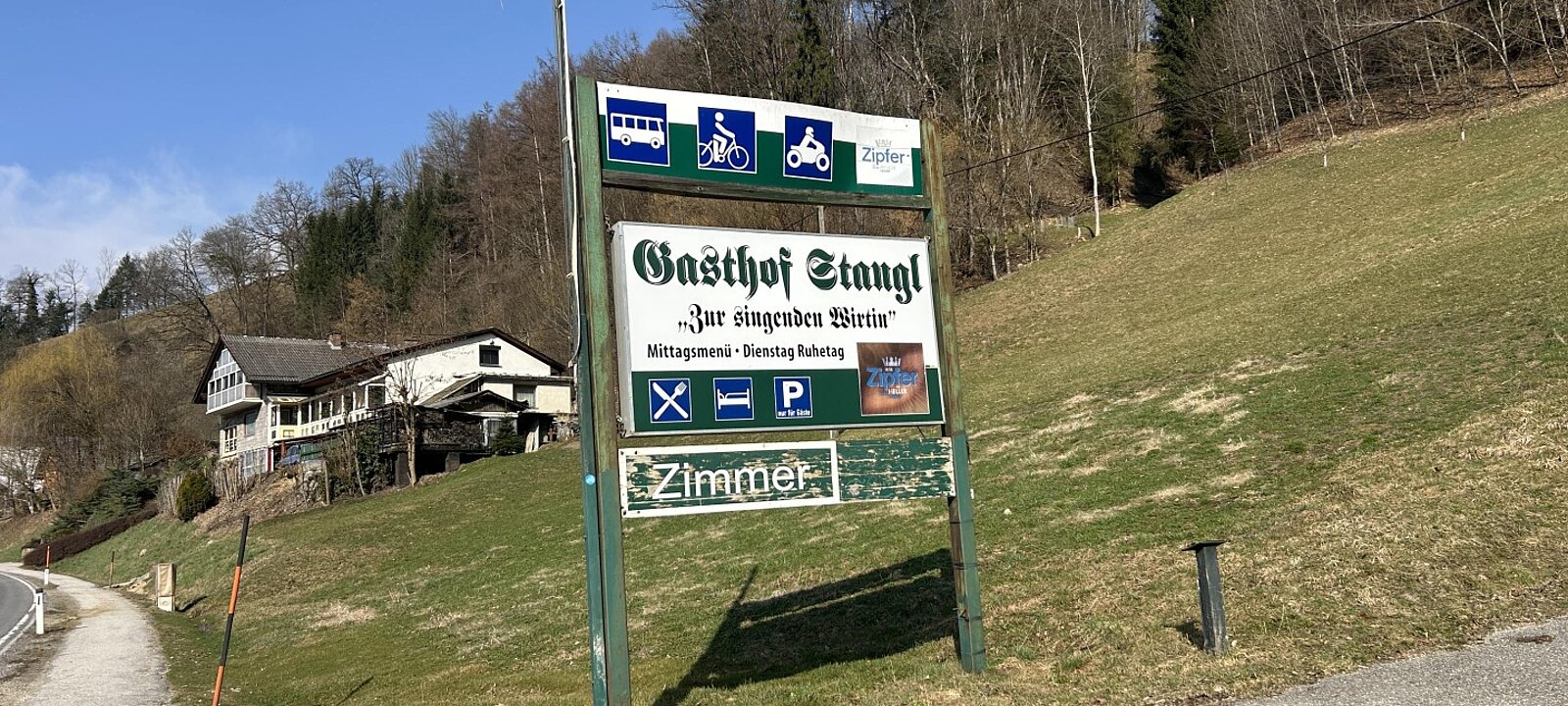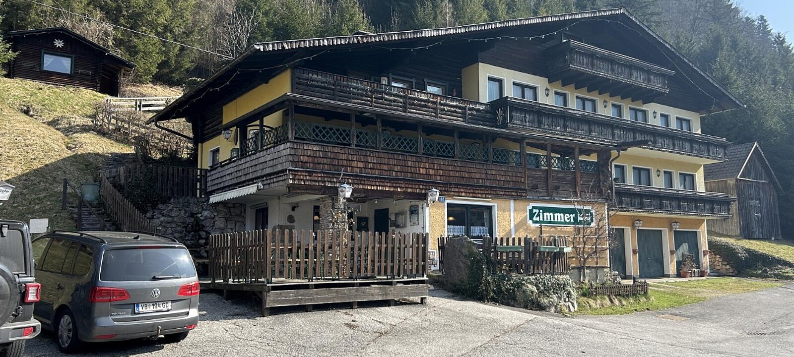 Das Gasthaus ist noch aktiv und hat eine aufrechte Betriebsanlagengenehmigung. Es gibt ausreichend Parkplätze