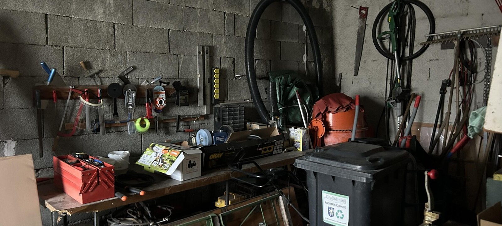 auch eine Werkstatt, Doppelgarage, urige Waldgartenhütte und eine ziemlich neuwertige große Küche. Es gibt eine gut funktionierende Ölheizung