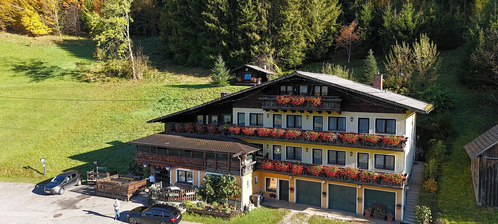 Das ca. 1978 gebaute Gasthaus bietet neben gemütlichen Stüberln und schönem Gastgarten mit Ennsblick