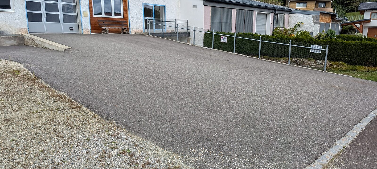 Die Zufahrt zu diesem Tor wurde neu asphaltiert.