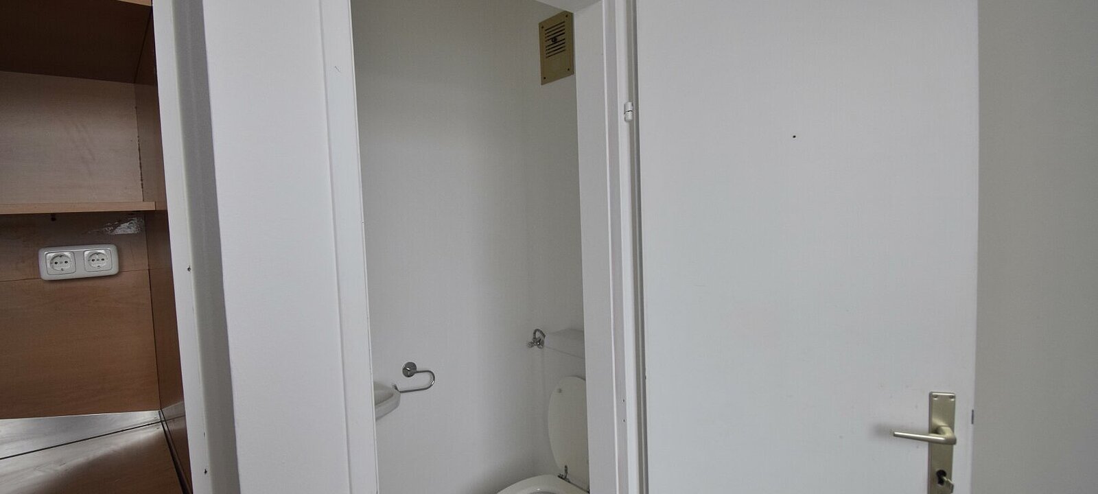 Eine Toilette sowie eine kleine Teeküche sind in der Einheit integriert und sorgen für praktischen Komfort im Büroalltag.