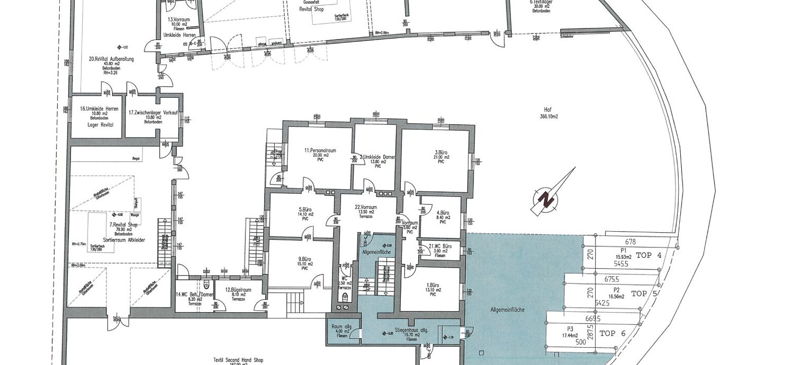 * Hoffläche im Außenbereich: ca. 366,10 m² (für Lieferverkehr bzw. Kundenverkehr geeignet)
