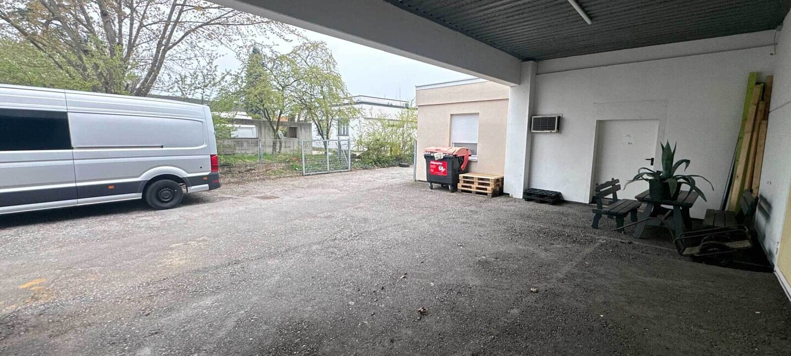 Im Außenbereich befinden Parkplätze, welche dem Objekt zugeordnet sind. Die Beschickung erfolgt über einen überdachten Ladebereich. Die Flächen können mit einem Stapler befahren werden,