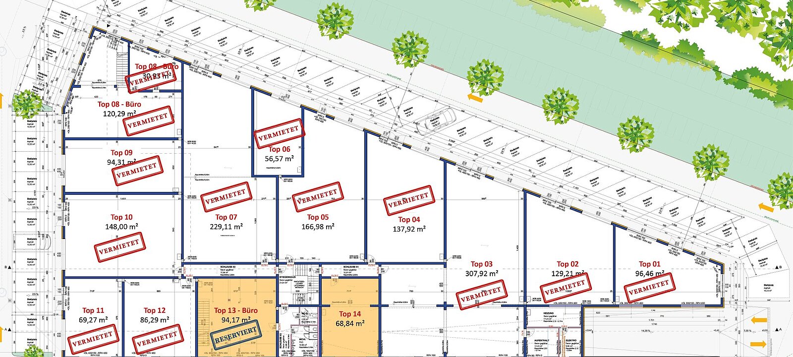 * Wir weisen daraufhin, dass auf Grund der Widmung MB an gewissen Branchen nicht vermietet werden kann. Vgl. § 21 Abs. 2a Oö. ROG 1994