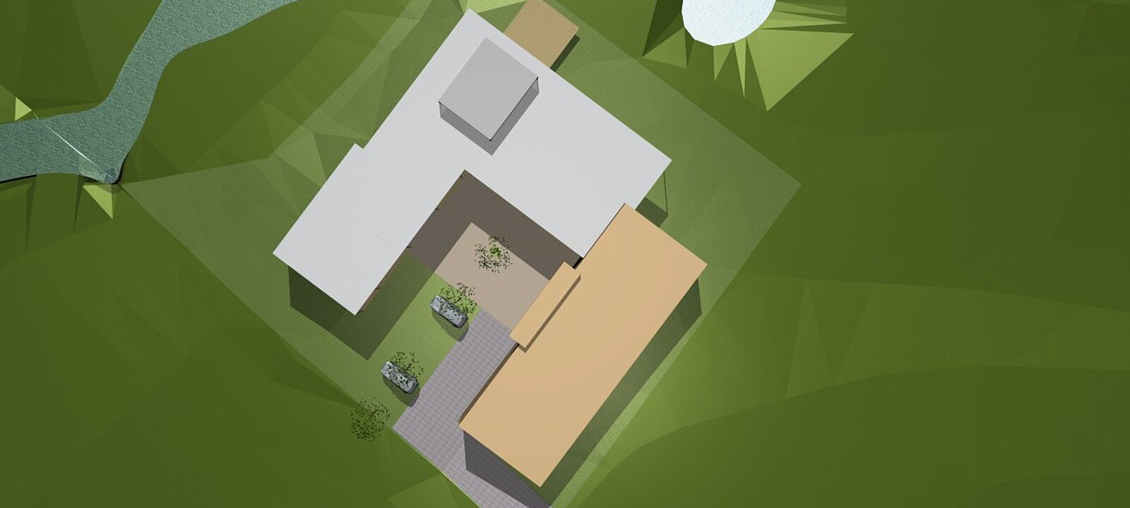 besonders hervorzuheben ist die lage direkt am bachlauf entlang der ost- und südseite des grundstücks.