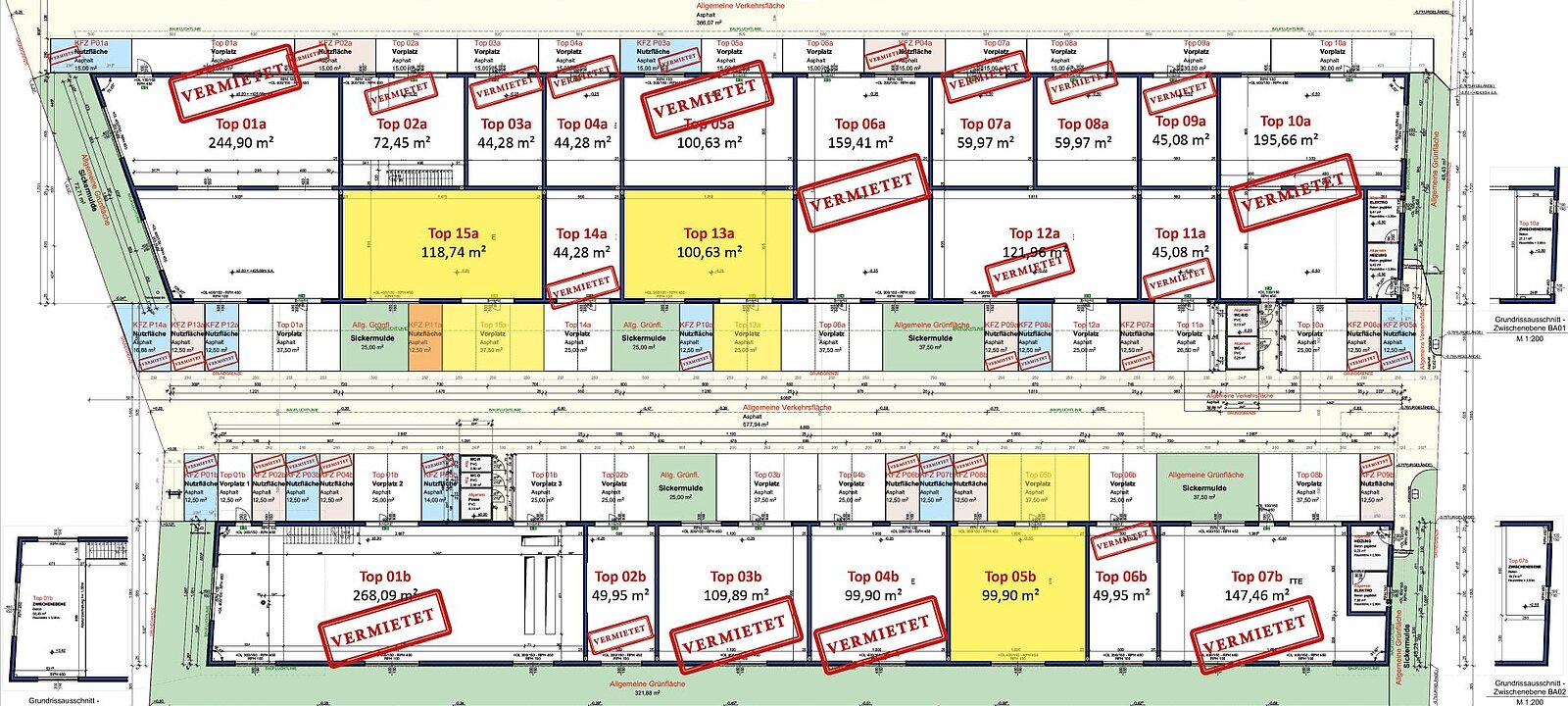 * jedes Top mit Wasseranschluss, Waschbecken, Stromanschluss, Steckdosen (Kraft- und Lichtstrom) und Heizlüfter ausgestattet