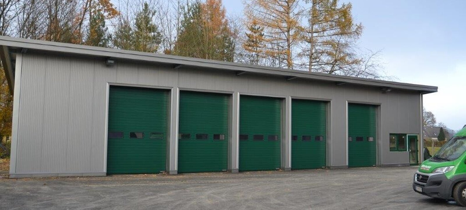 Tore: 5 Stück elektrische Sektionaltore (je 3 x 4 m)